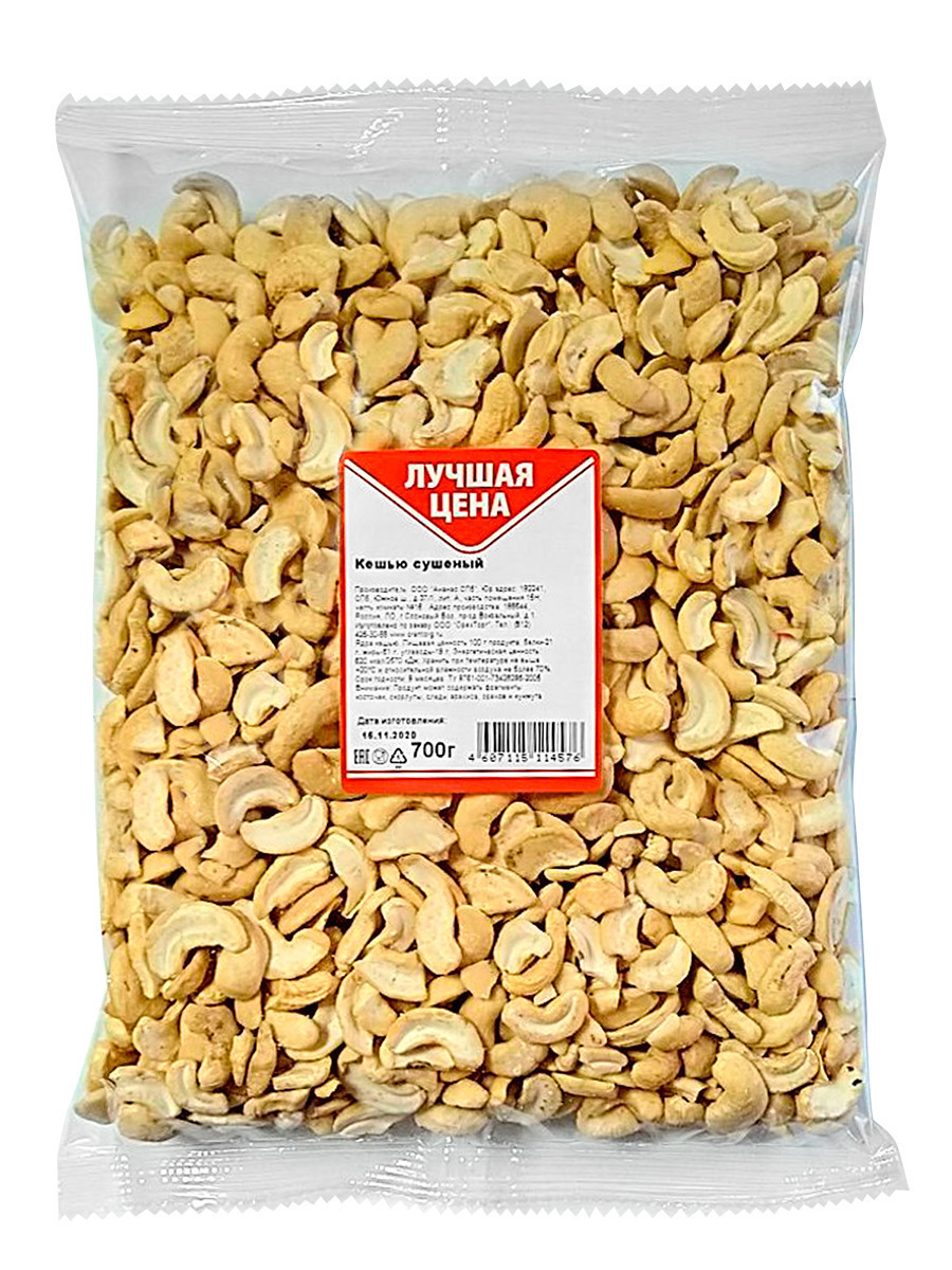 Кешью очищенный сушеный без обжарки (сырой) половинки Лучшая цена 700 гр