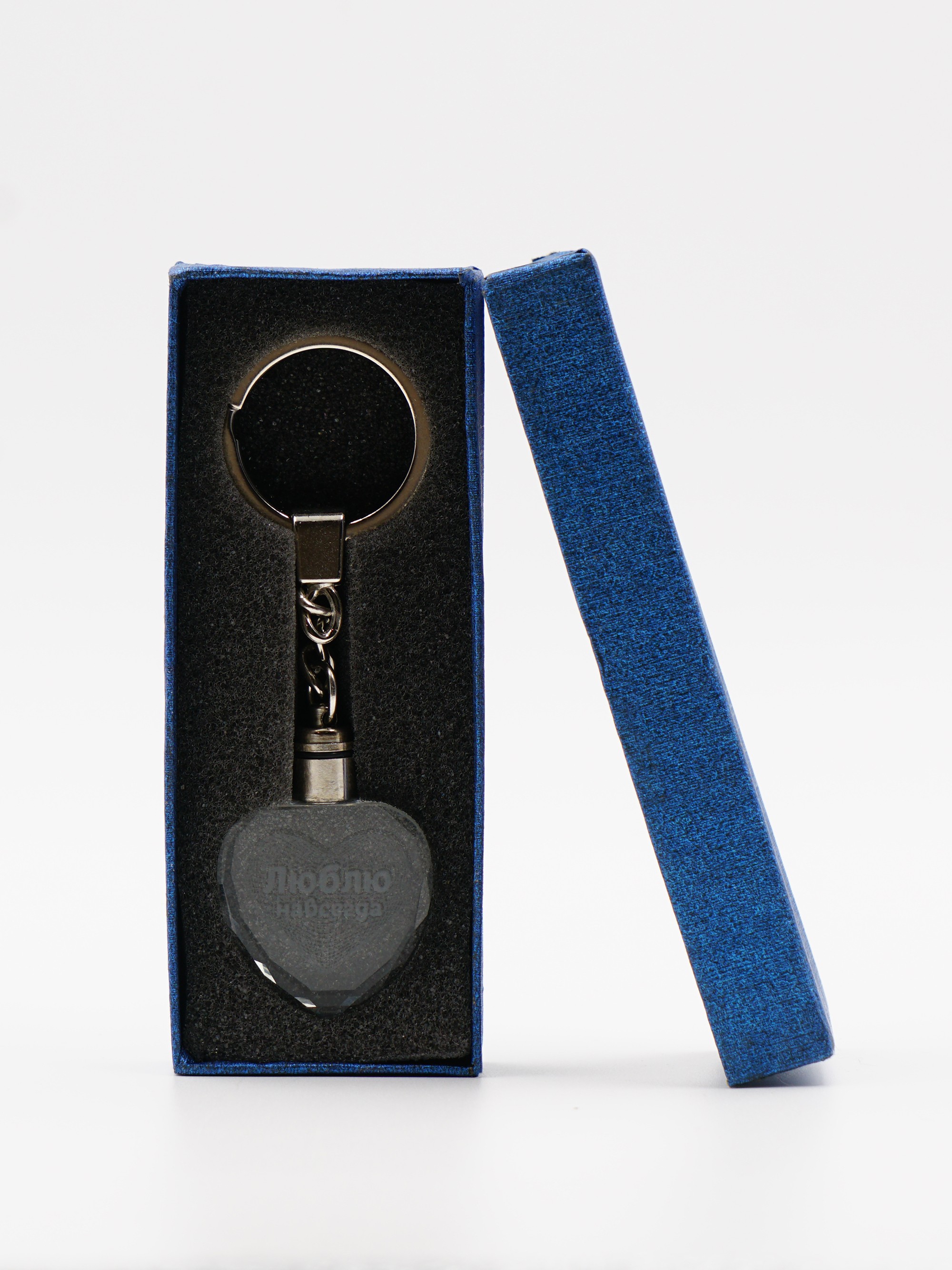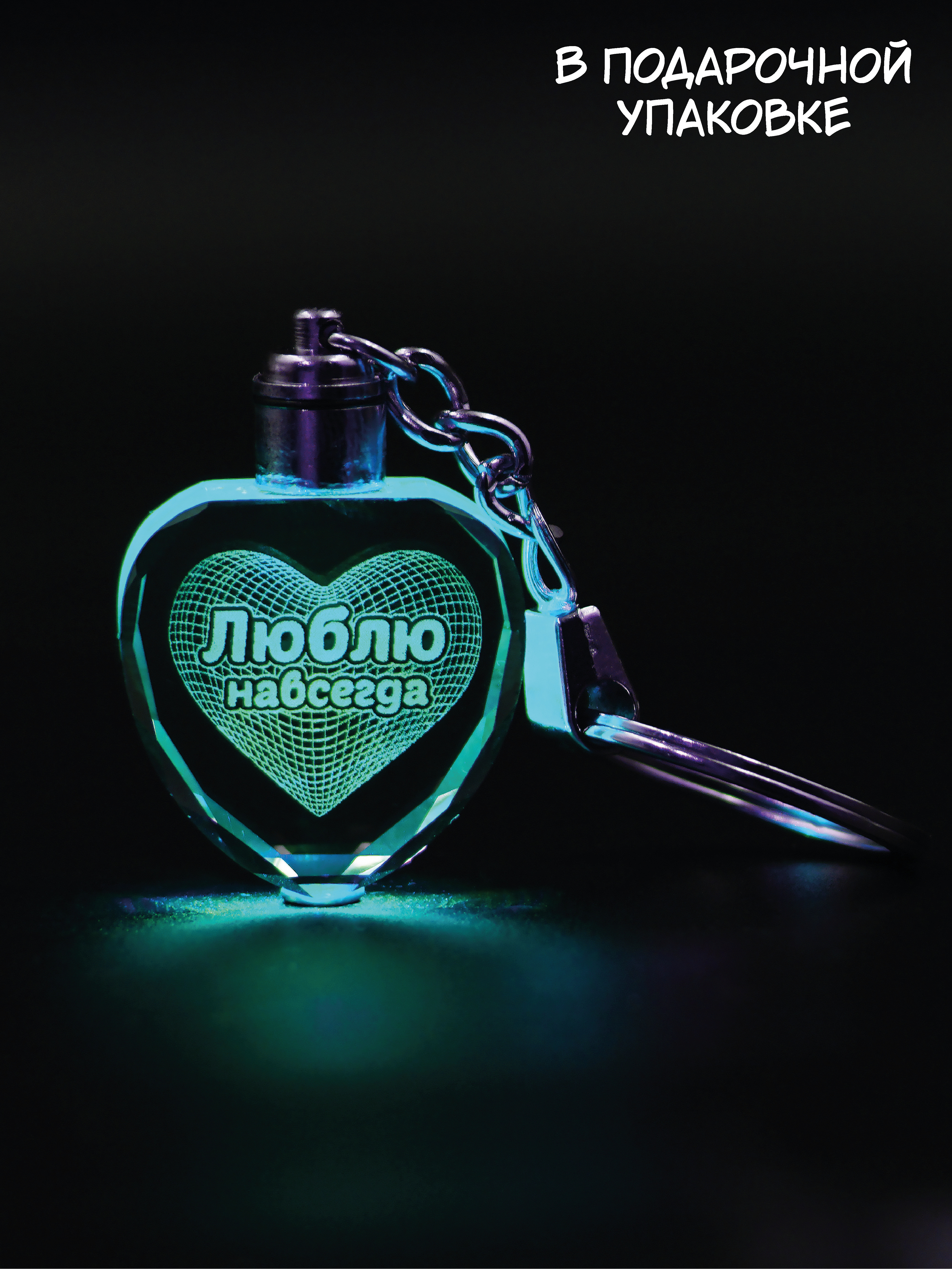 Брелок СЕРДЦЕ "Люблю навсегда" (лазерная 3d гравировка в кристалле с led-подсветкой)