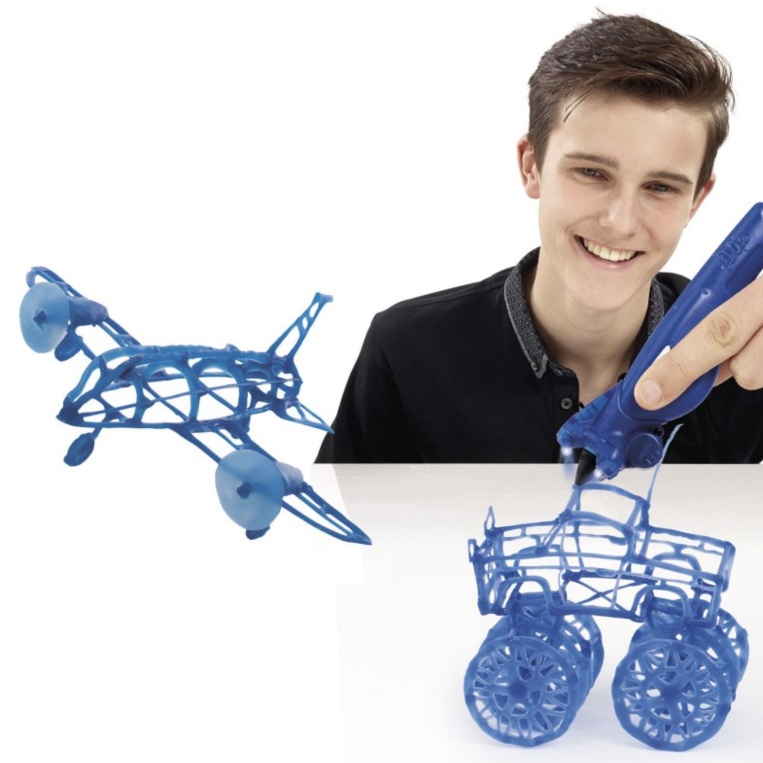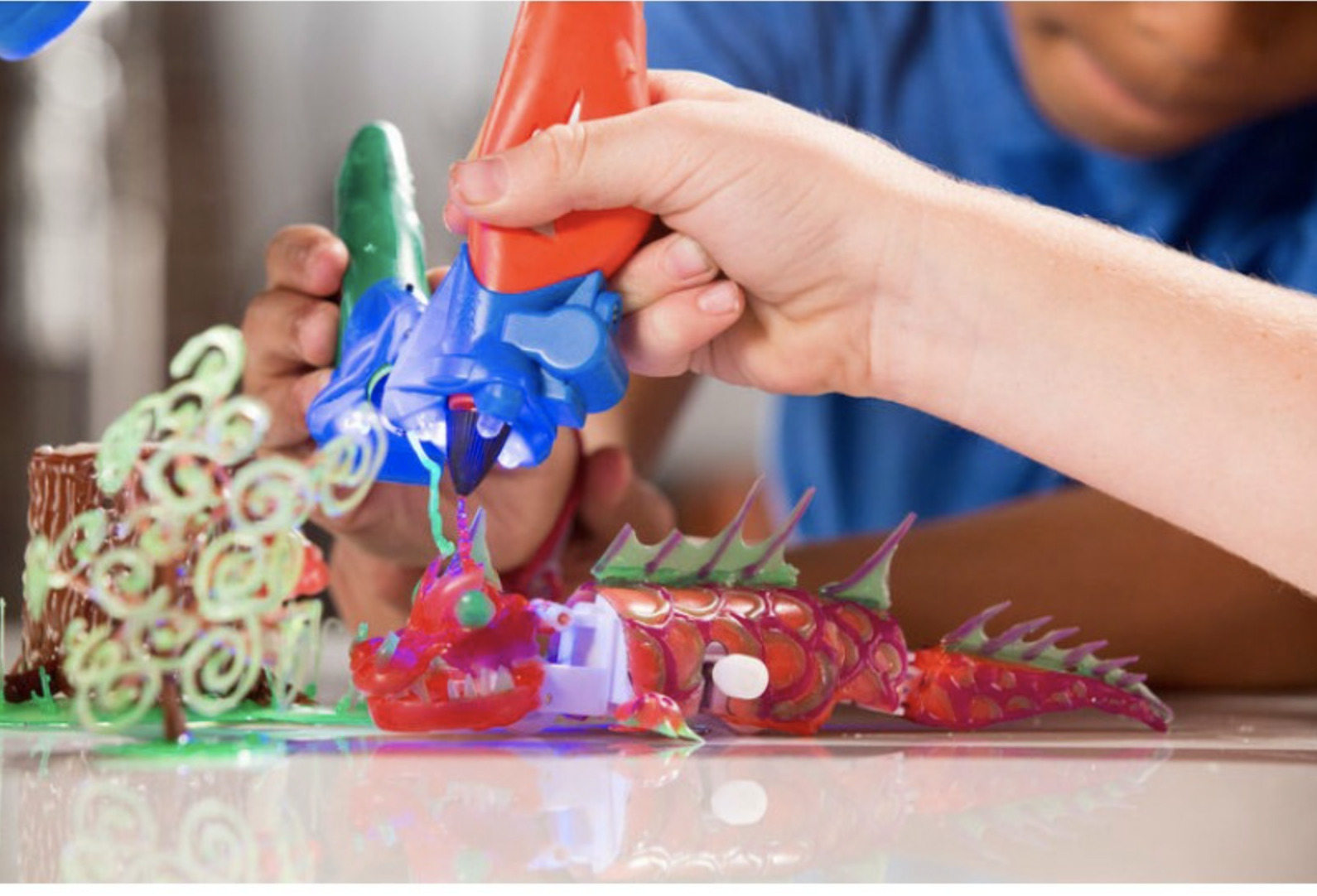 Набор из трех 3D-ручек, (4 цветные 3D-ручки и две 3D формочки)