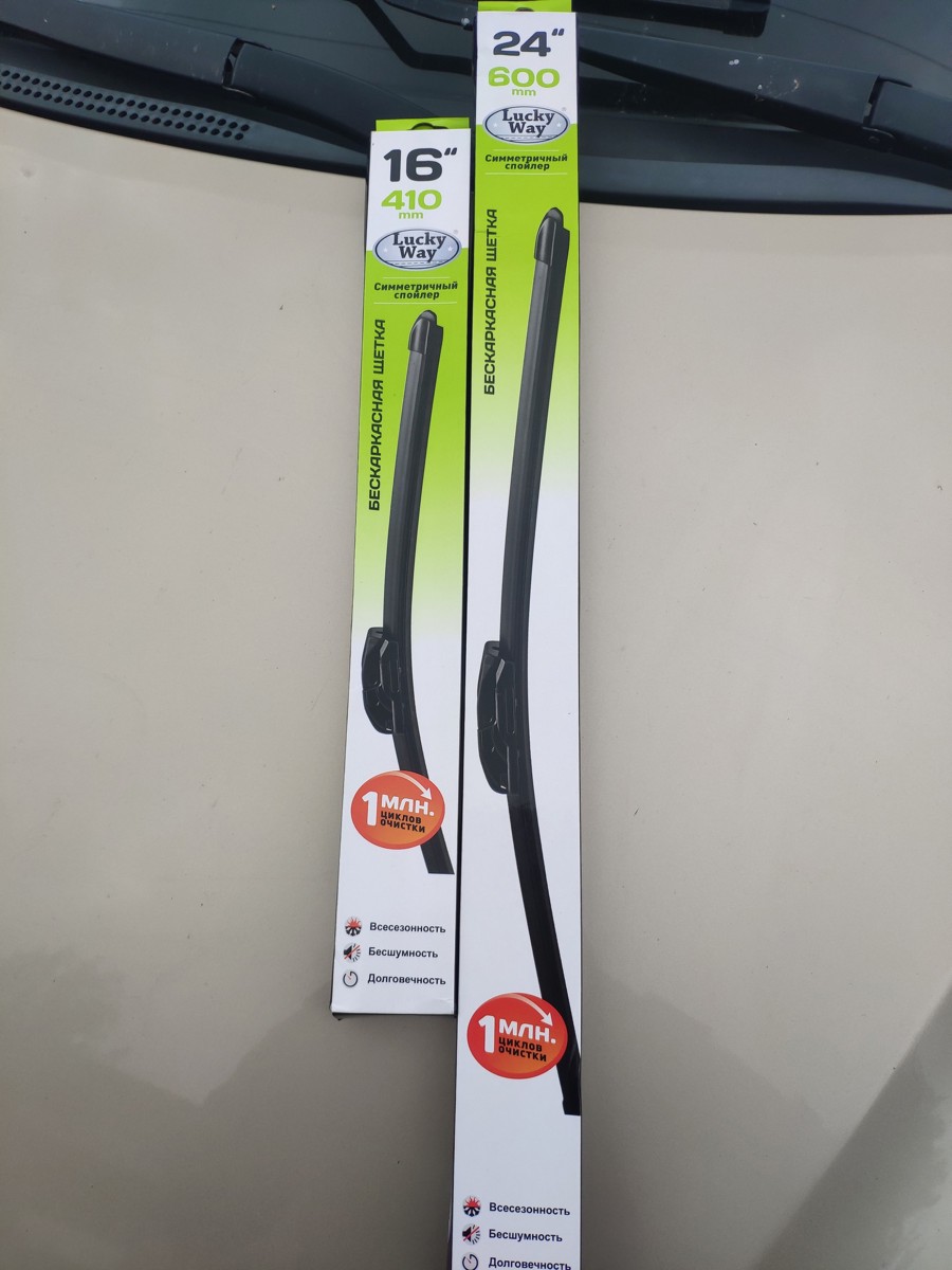 2 щётки стеклоочистителя LuckyWay (60см+41см) LADA Granta/Kalina; DATSUN mi-Do/on-Do; TOYOTA RAV4 (05-12); KIA Rio (17-Н.В.); HYUNDAI Solaris (17-Н.В.); VW Polo Sedan (10-Н.В.)