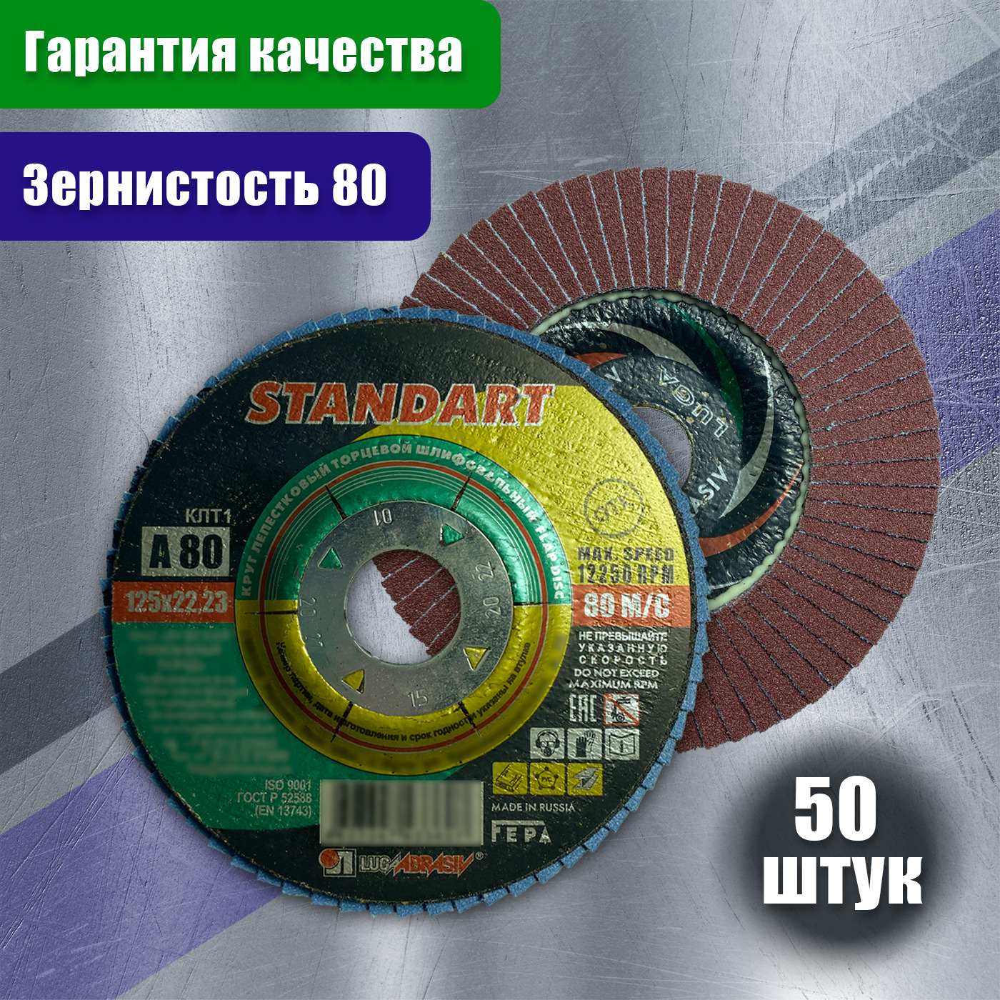 Диск шлифовальный, Круг лепестковый торцевой LUGA ABRASIV 125 x 22,23; P40, 50 шт.