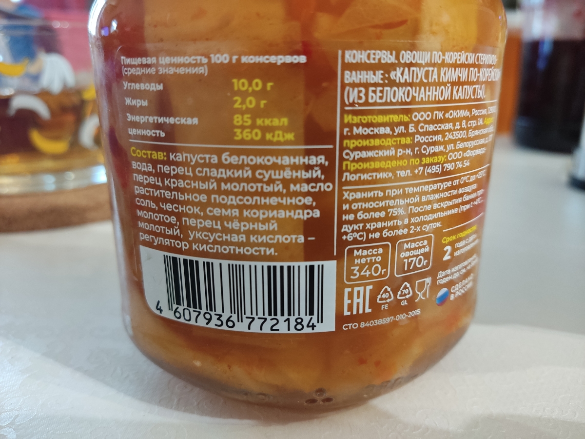 Капуста КИМЧИ "Лукашинские" по-корейски 340г. 1 шт