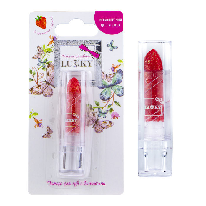 LUKKY Помада для губ с блёстками, с ароматом клубники, красный
