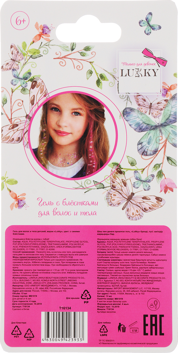 Lukky Гель для волос и тела, с блестками, синий, 13 мл