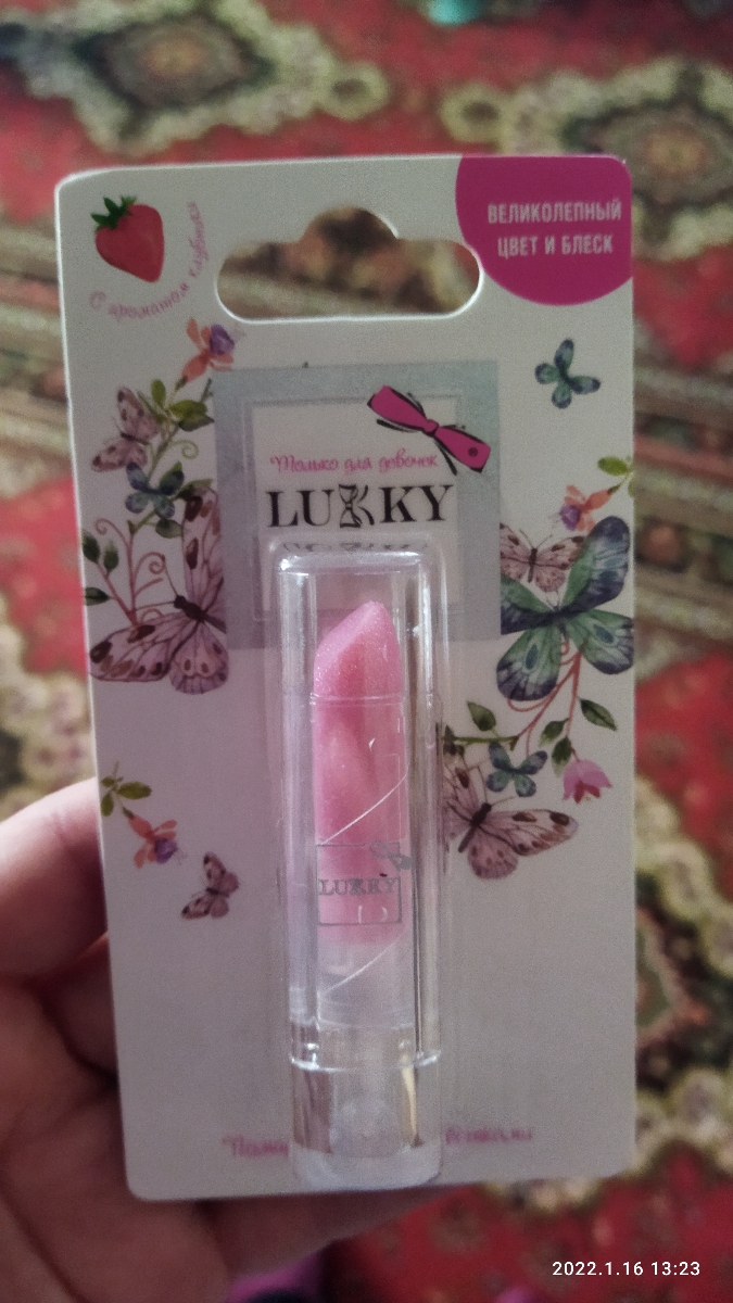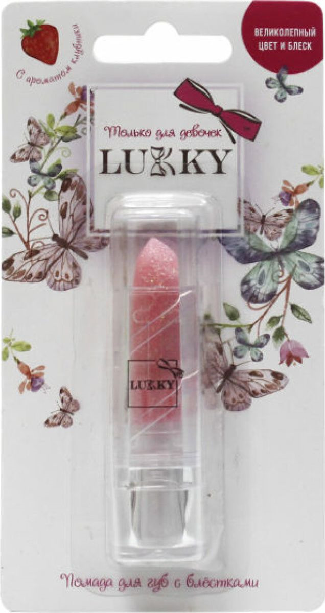 Lukky Помада для губ детская, с ароматом клубники, с блестками, цвет: розовый