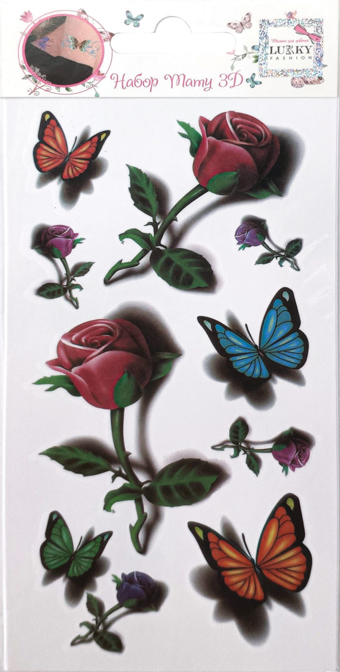 LUKKY FASHION набор тату 3D, бабочки, розы, 9х18см