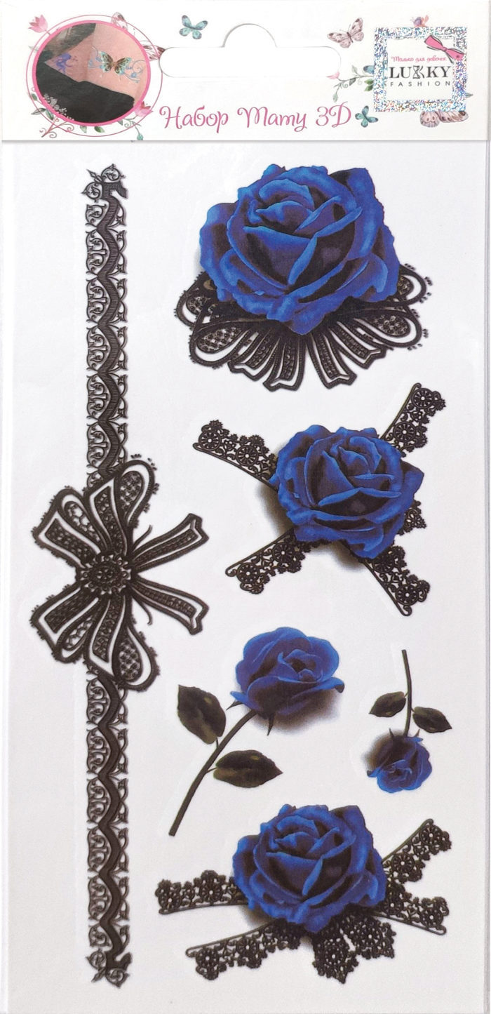 LUKKY FASHION набор тату 3D, синие розы, 9х18см