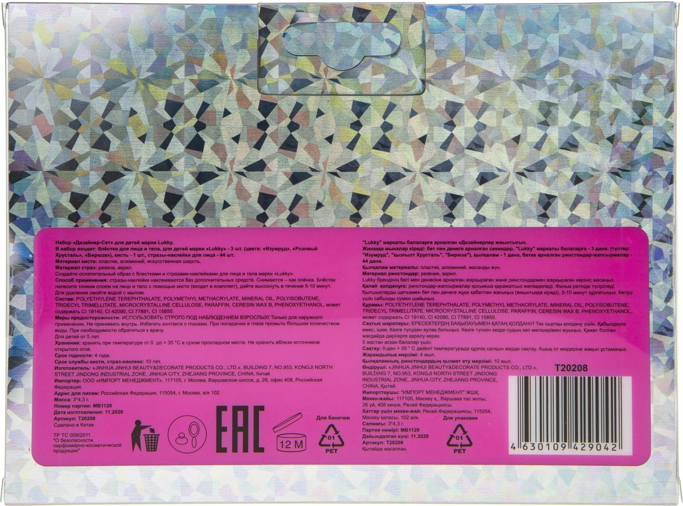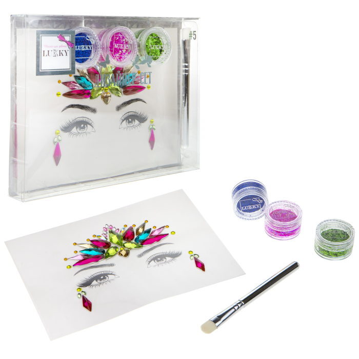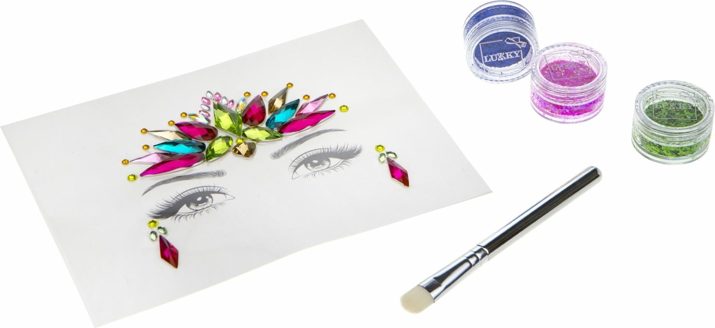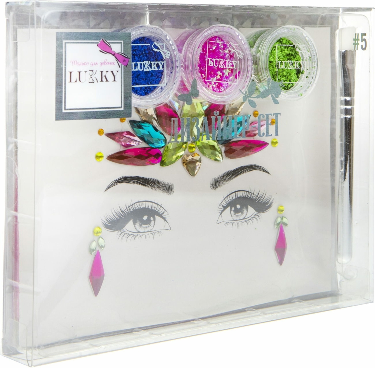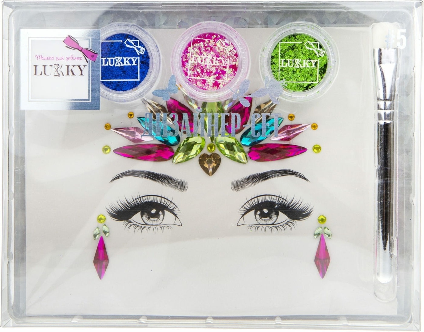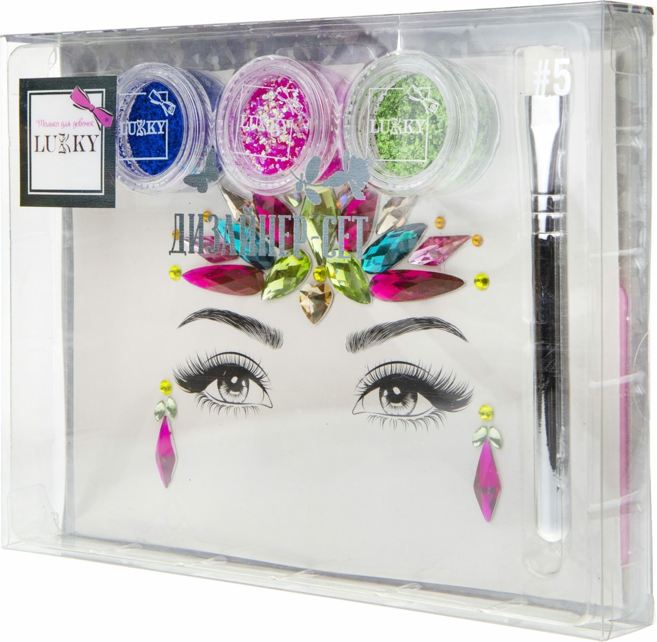 Lukky "Дизайнер-Сет #3" набор для дизайна лица и тела с клейкими блёстками 3 баночки,кистью,стразами
