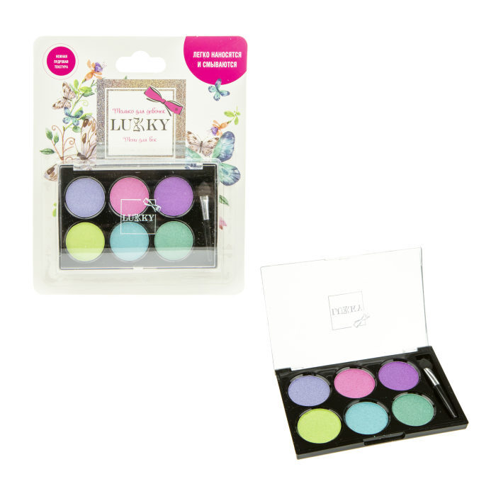 Тени для век LUKKY пудровые, 6 цветов 7,8 г с аппликатором