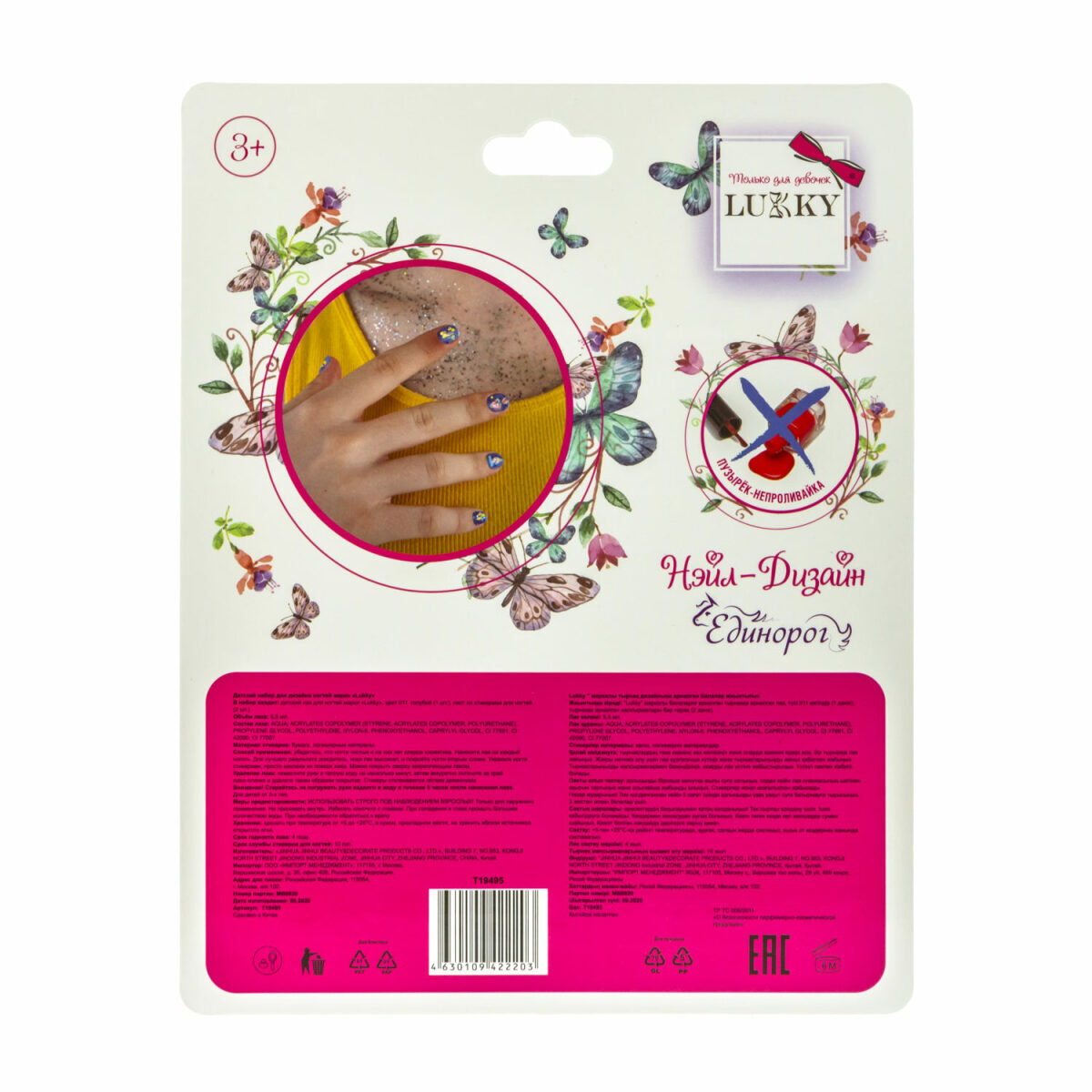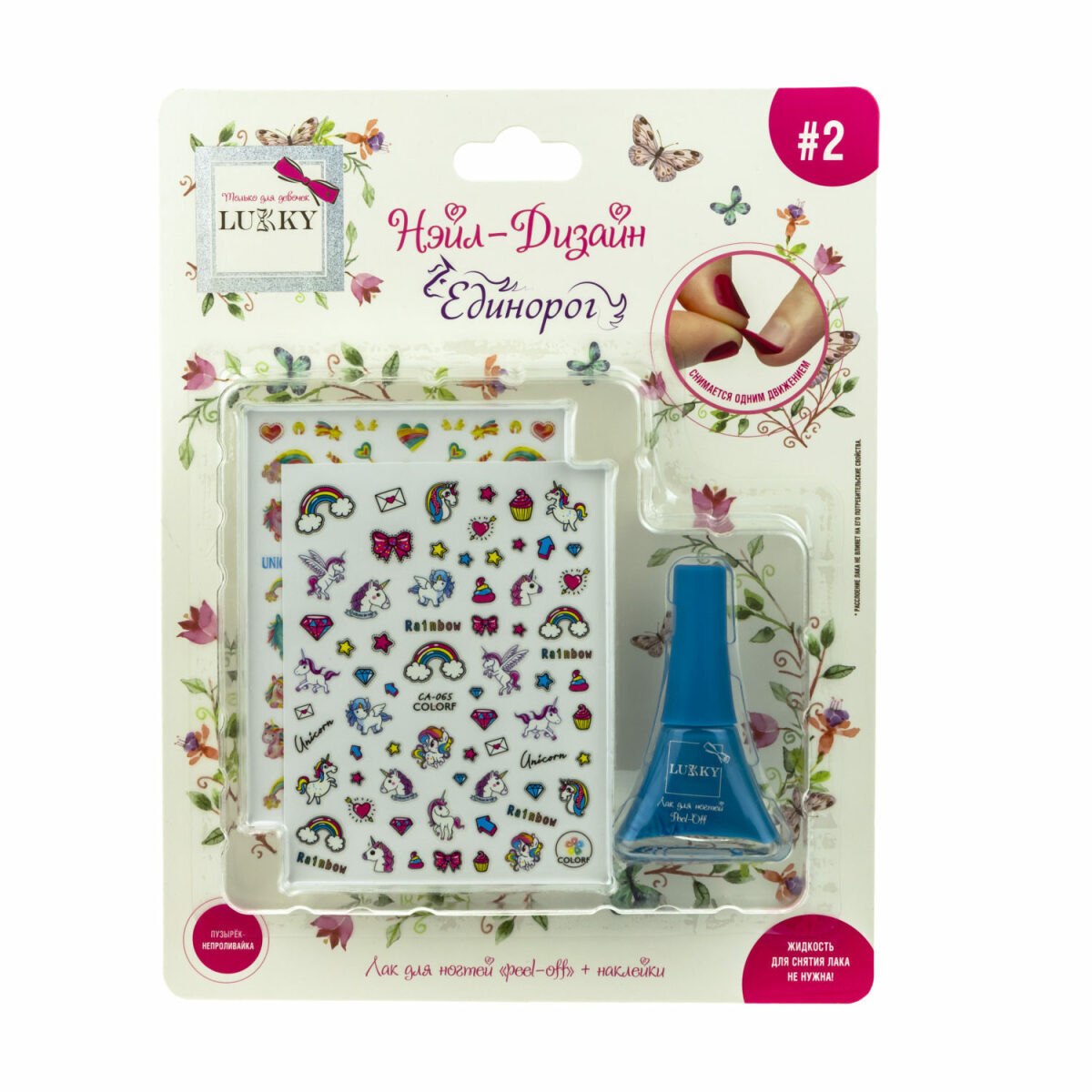 Набор LUKKY "Нэйл-Дизайн" #2, лак для ногтей голубой+наклейки "Единорог"