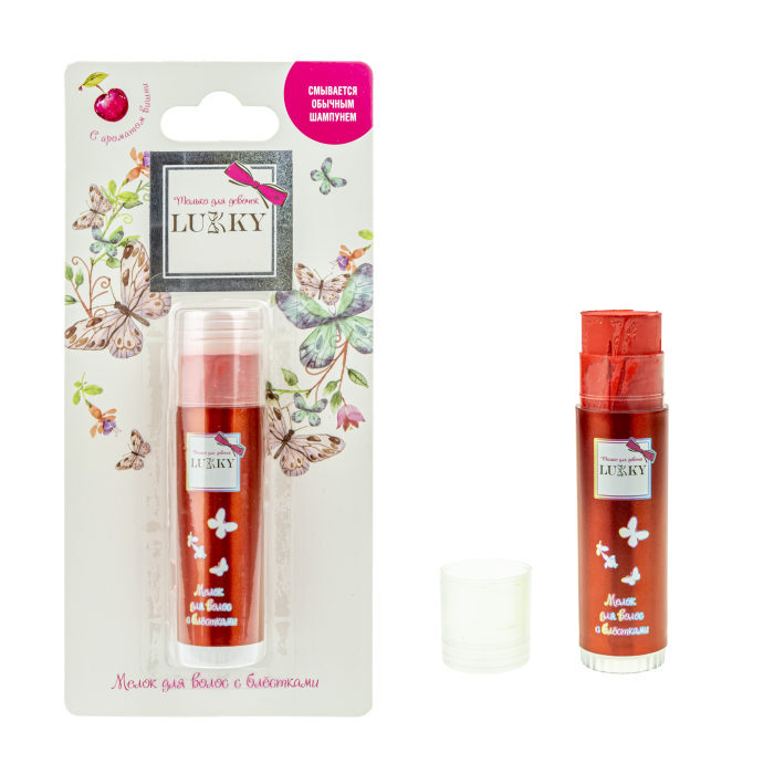 LUKKY Красный мелок для волос с блёстками и с ароматом вишни