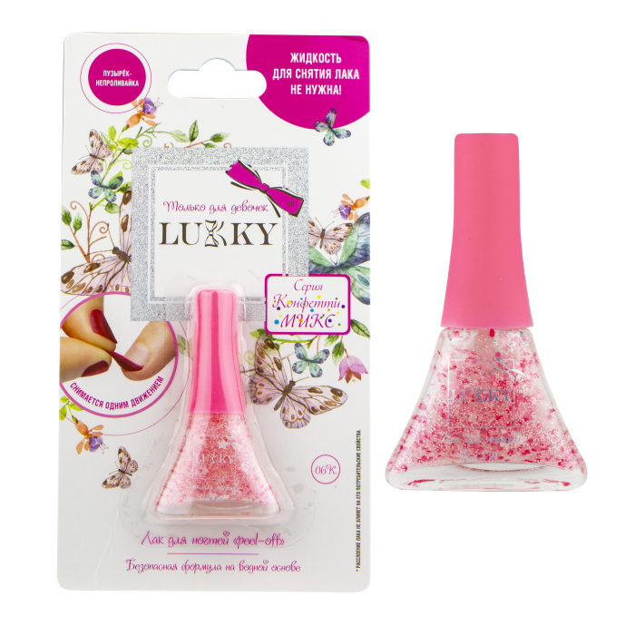 Лак LUKKY peel-off серии "Конфетти-Микс" бело-розовый мик с цветочками 5,5мл