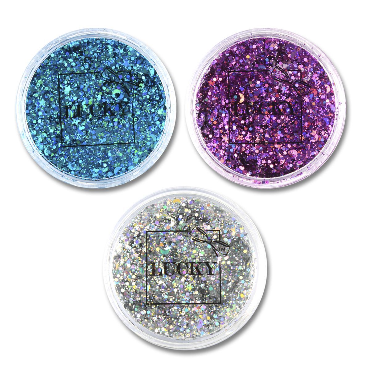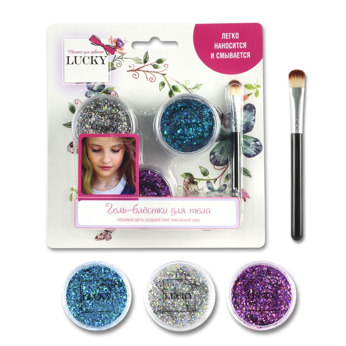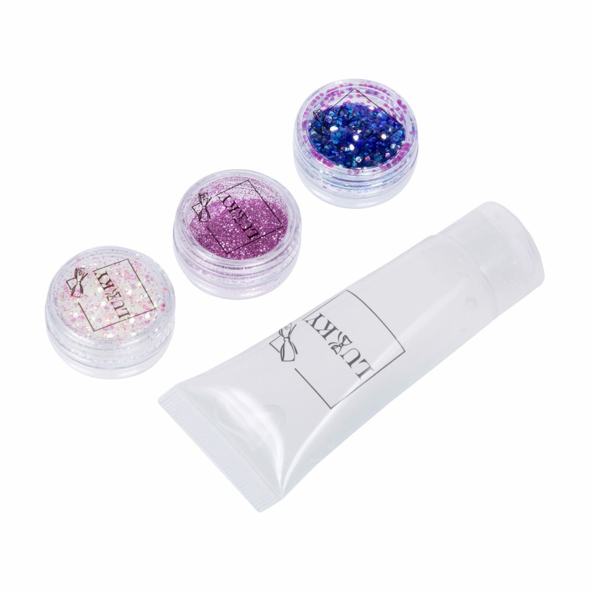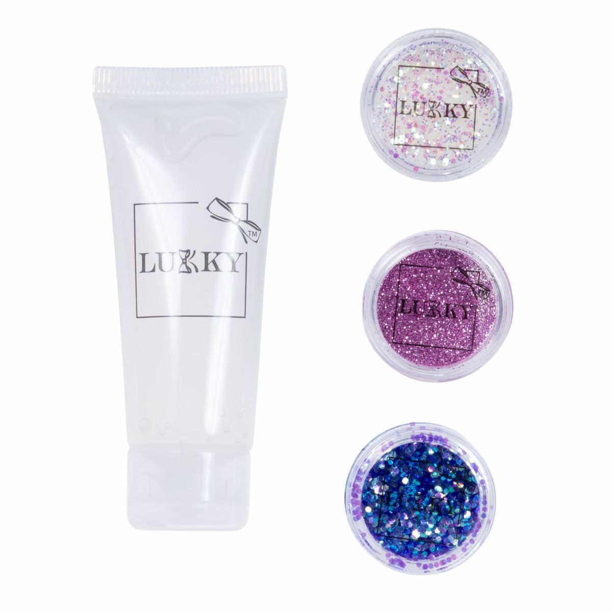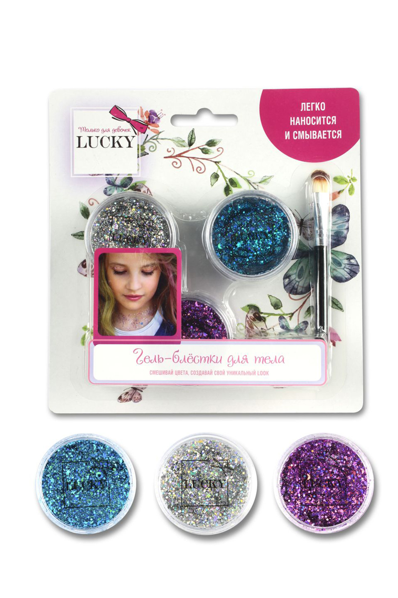 Lucky Гель-блестки для тела и волос набор, розовый, синий, жемчужный, 3 шт по 3 г + 25 мл