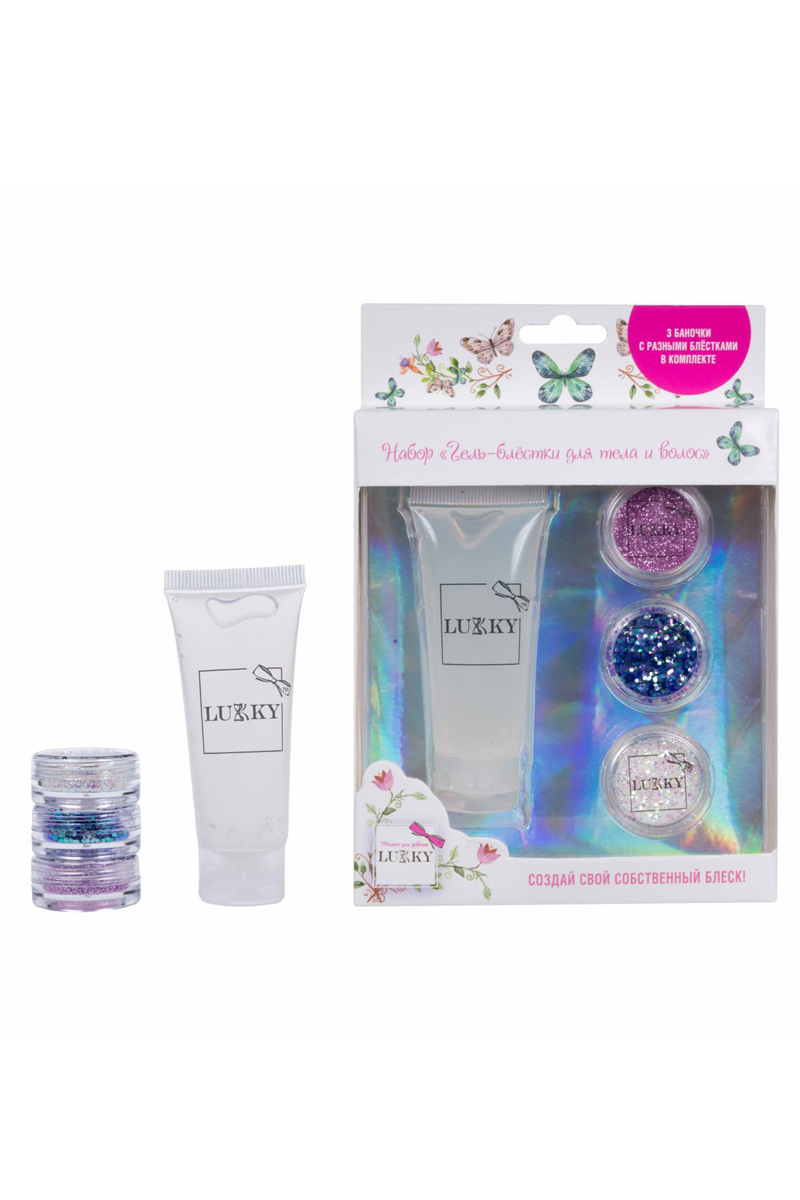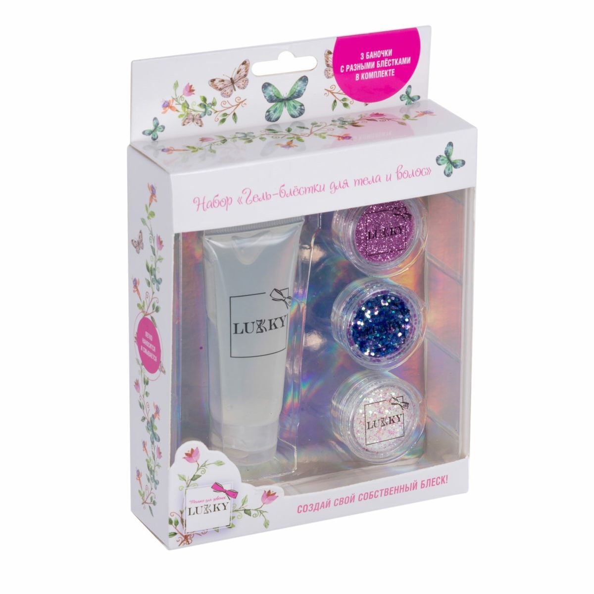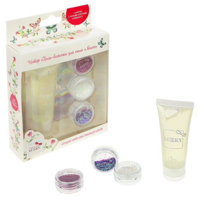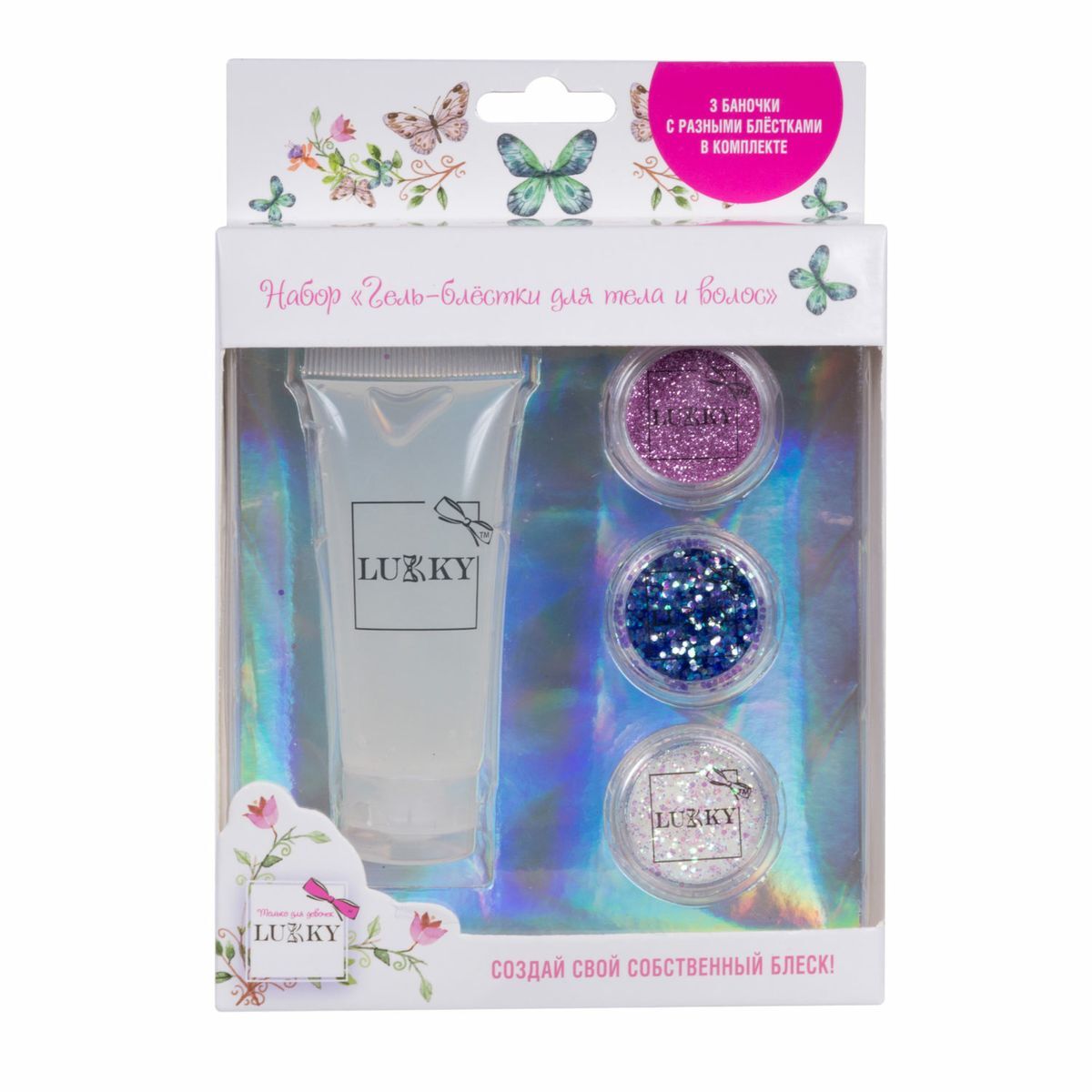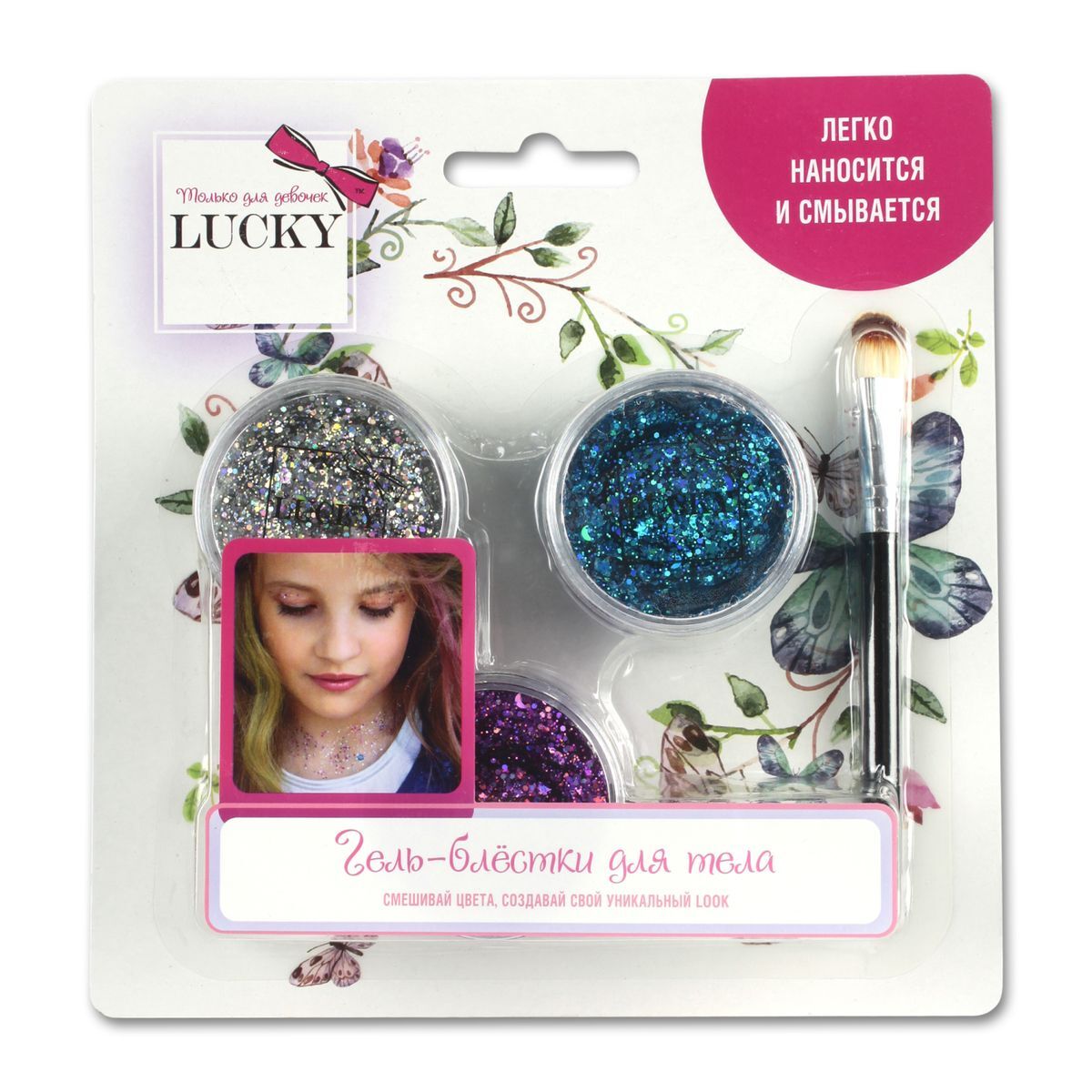 Lucky Гель-блестки для тела и волос набор, розовый, синий, жемчужный, 3 шт по 3 г + 25 мл