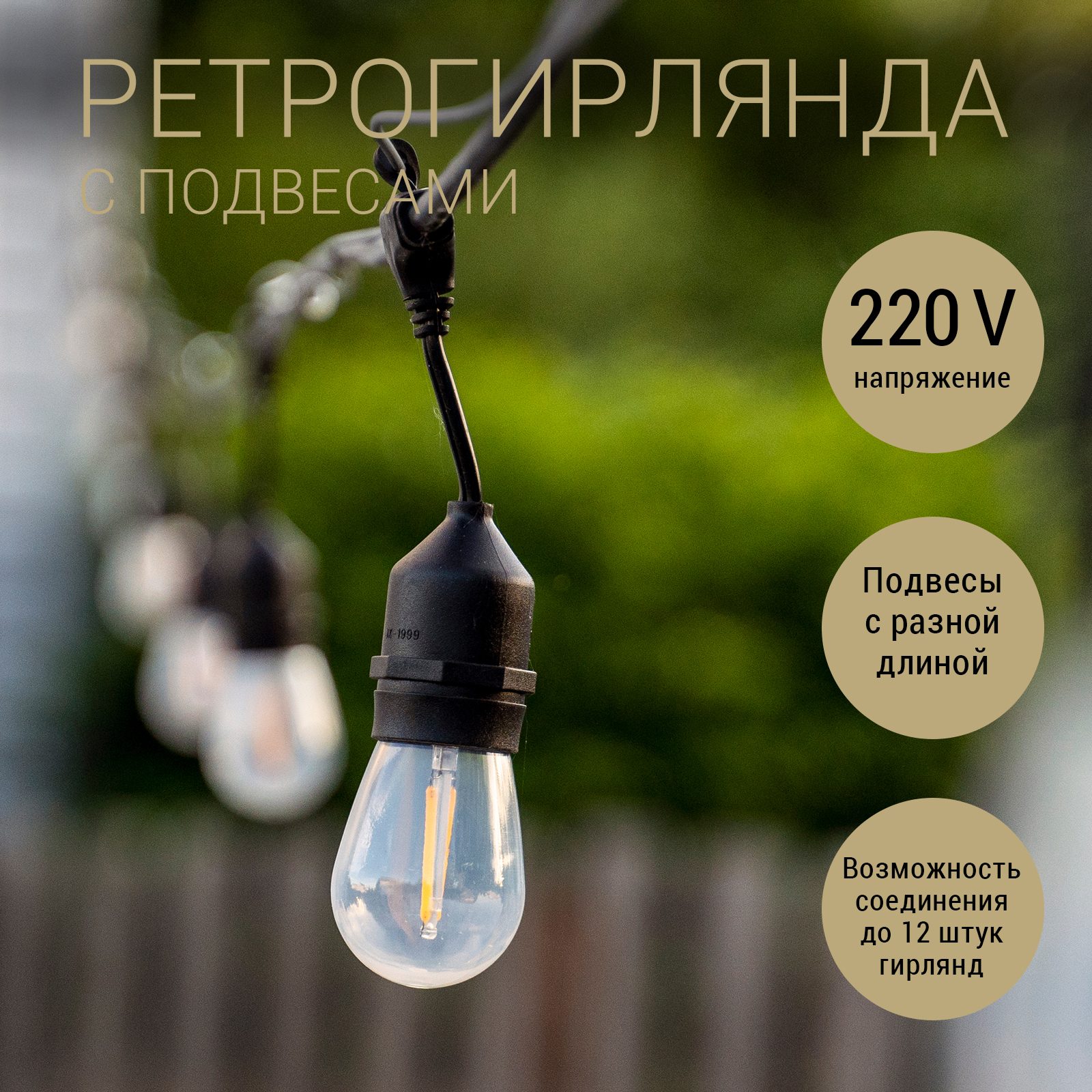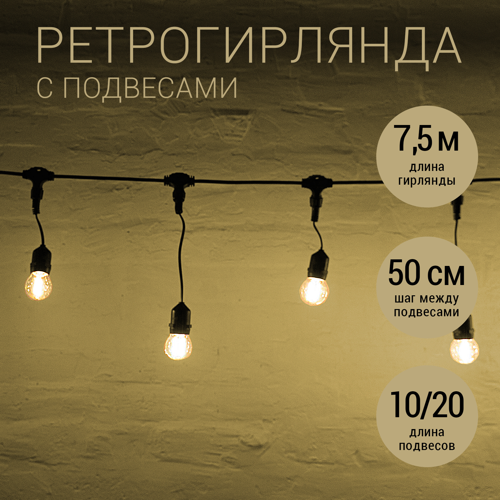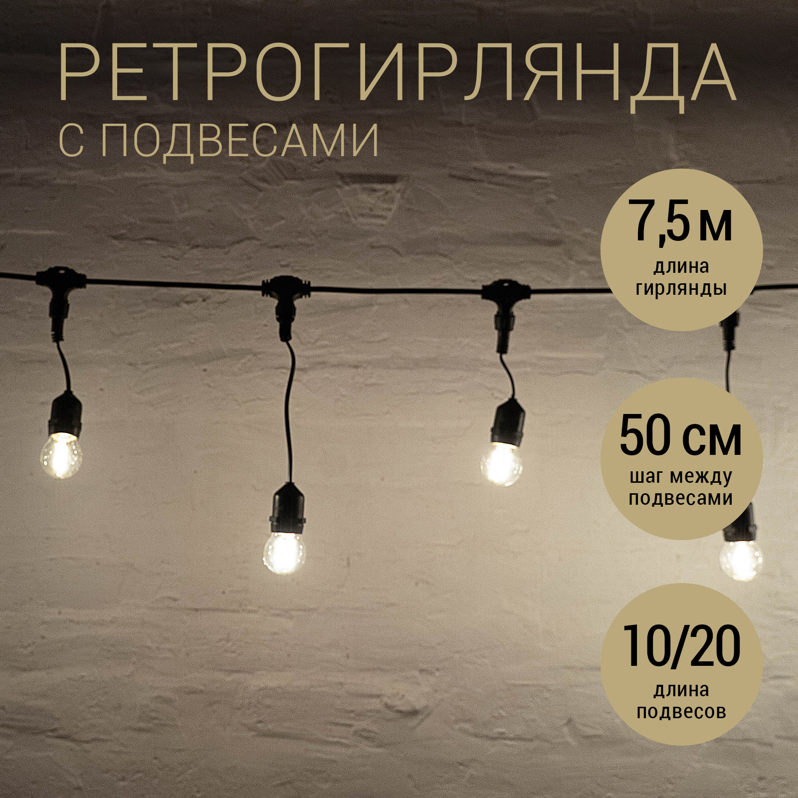 Электрогирлянда уличная Ретро LUMINELLI Филаментная 15 ламп, 7.5 м, питание От сети 220В, 1 шт