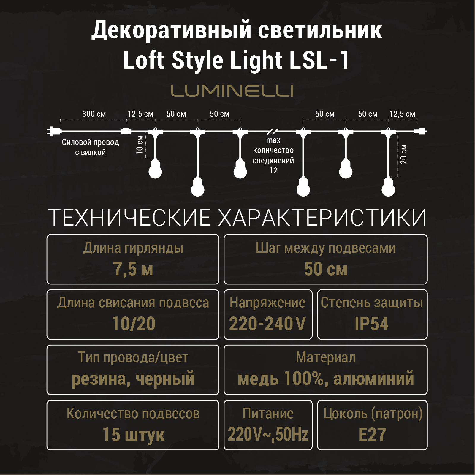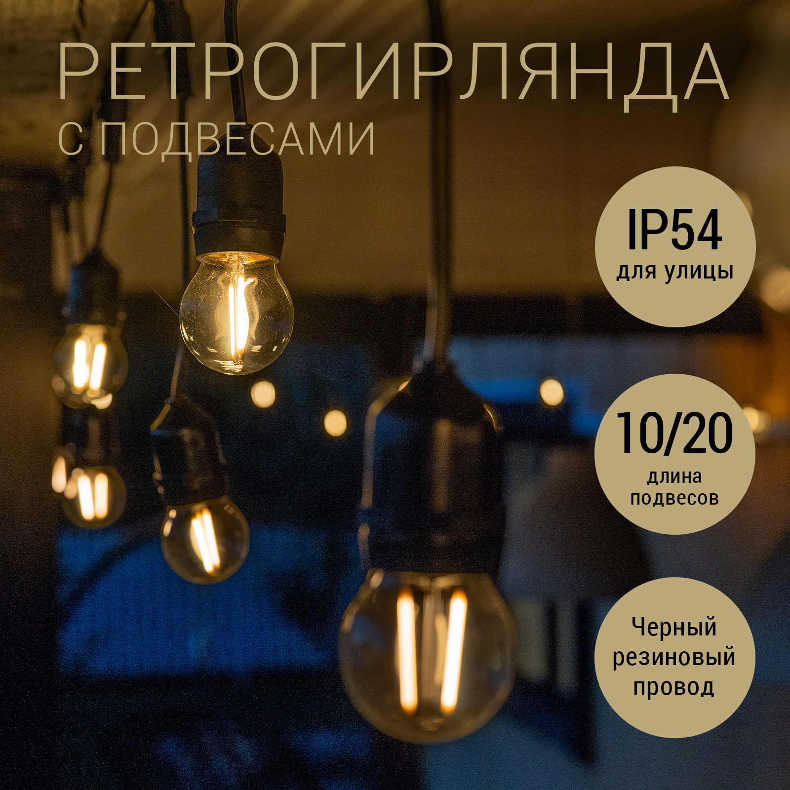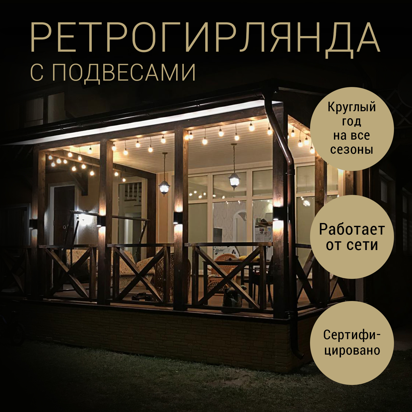 Электрогирлянда уличная Ретро LUMINELLI Филаментная 15 ламп, 7.5 м, питание От сети 220В, 1 шт