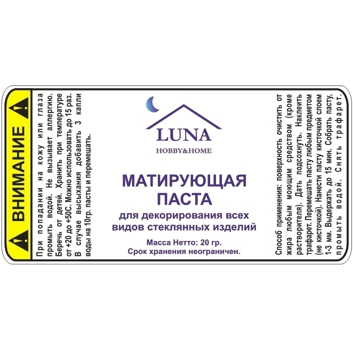 Паста для матирования (травления) стекла и зеркал "LUNA HOBBY&HOME", розовая, 20 г