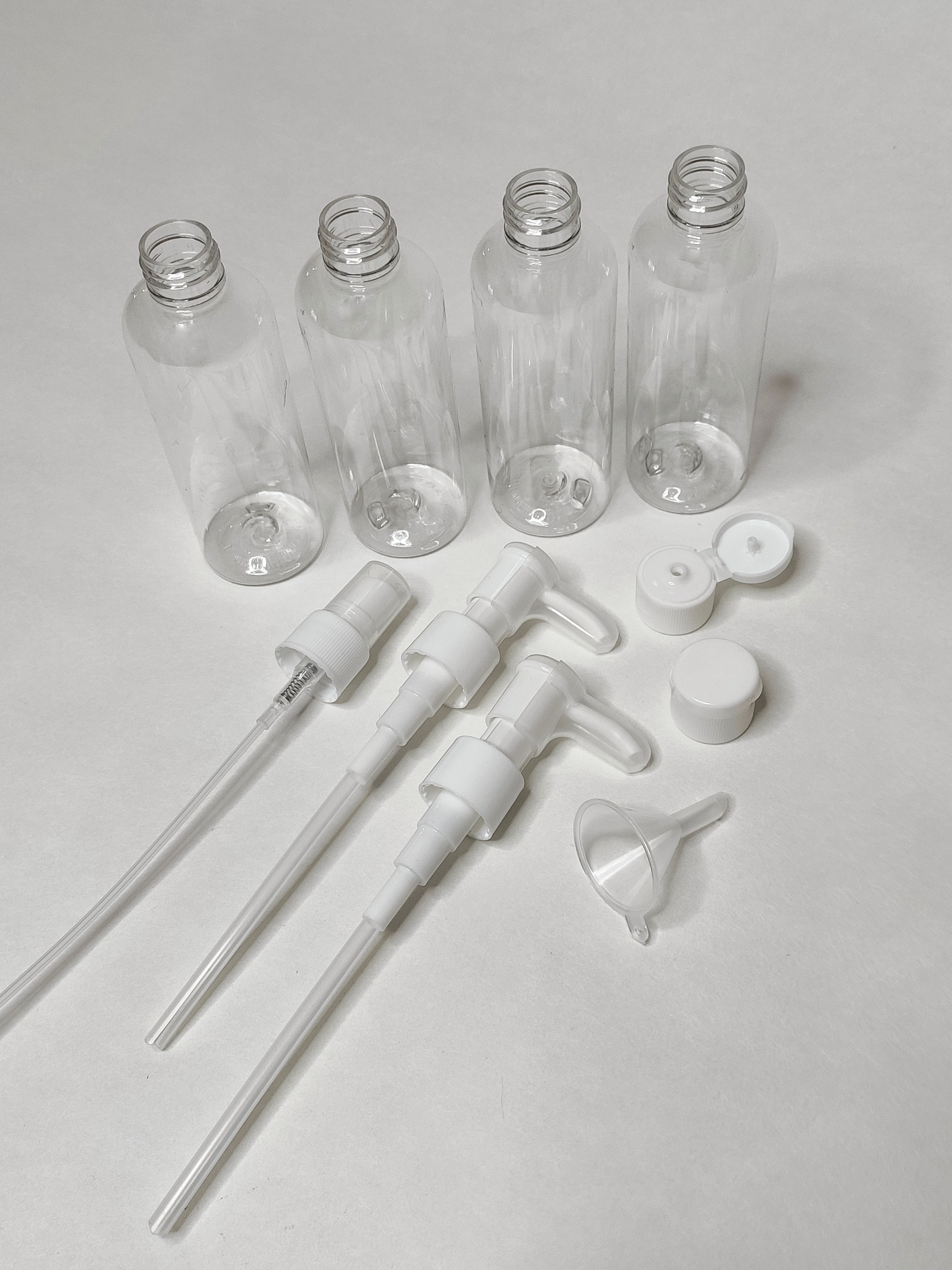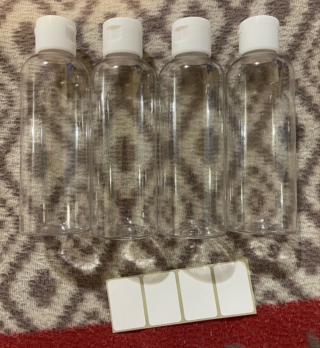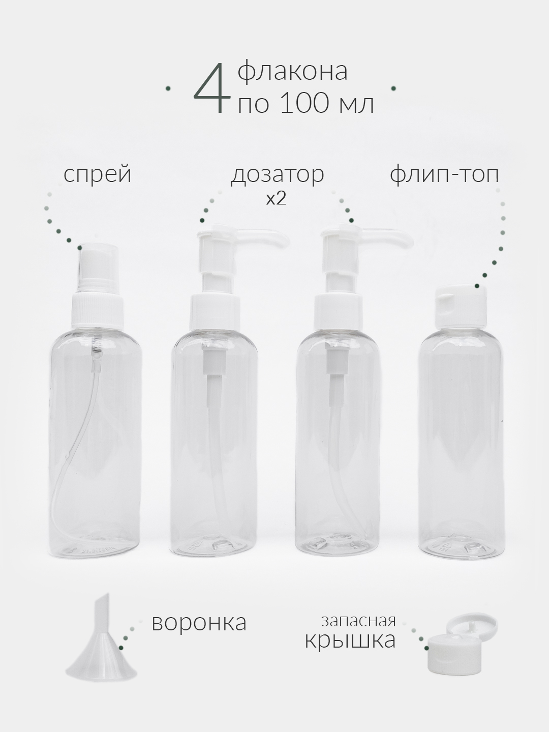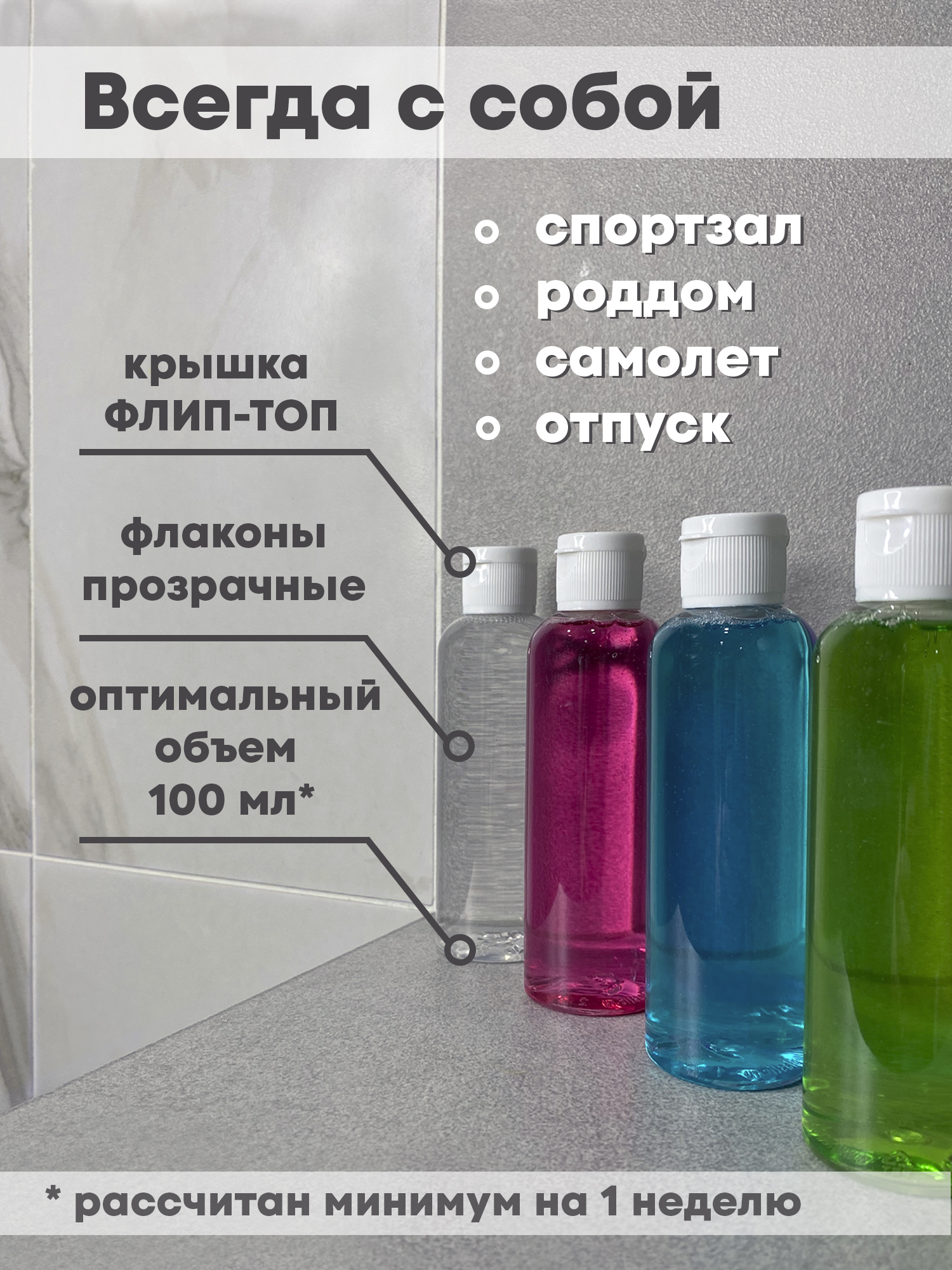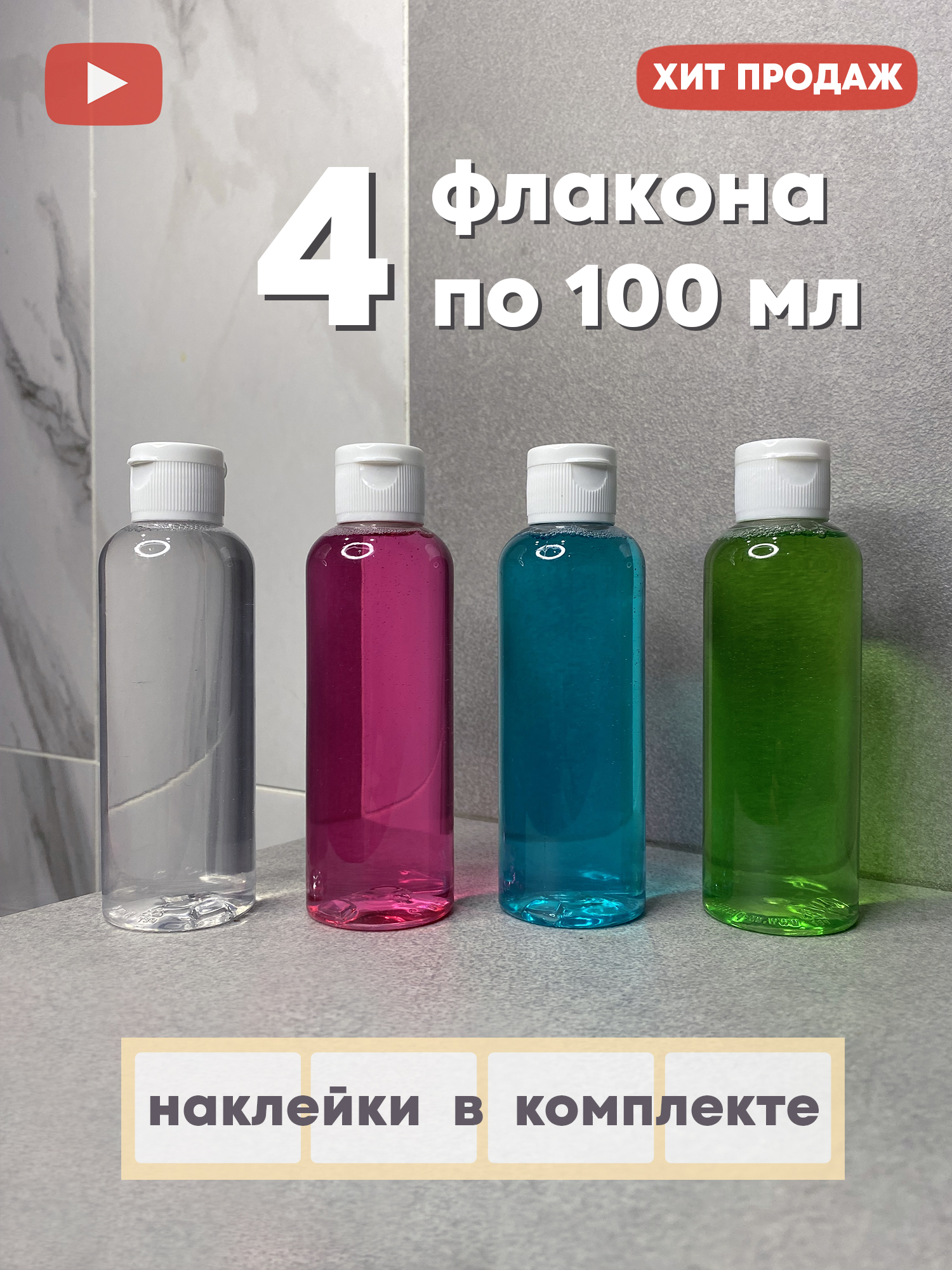 Флаконы, Дорожный набор флаконов по 4шт по 100мл, Флаконы круглые с крышками, Баночки косметические