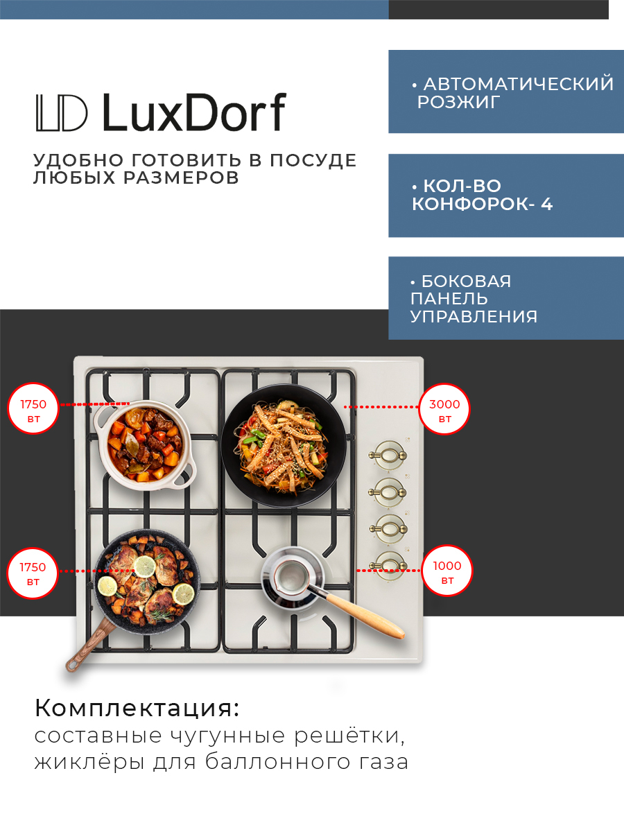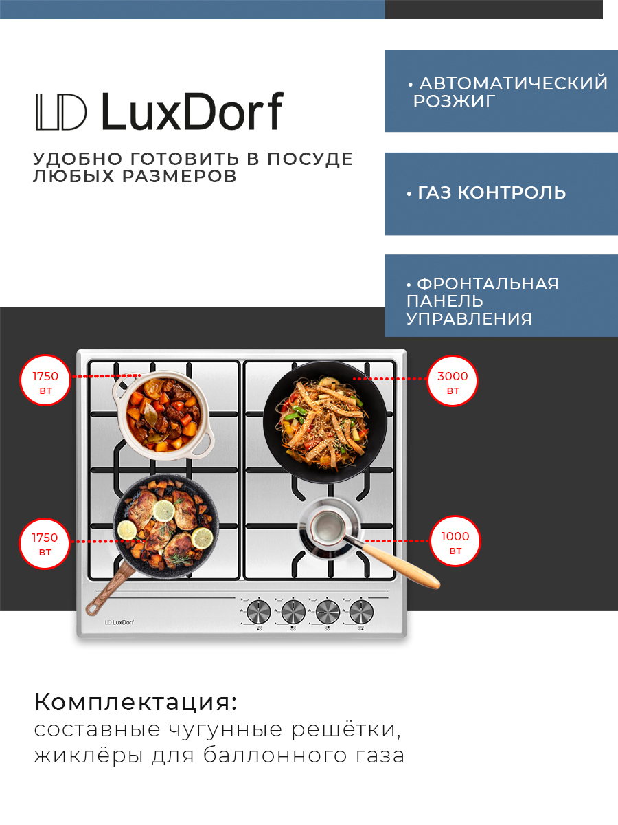 Газовая варочная панель LuxDorf H30V20M550, серый металлик