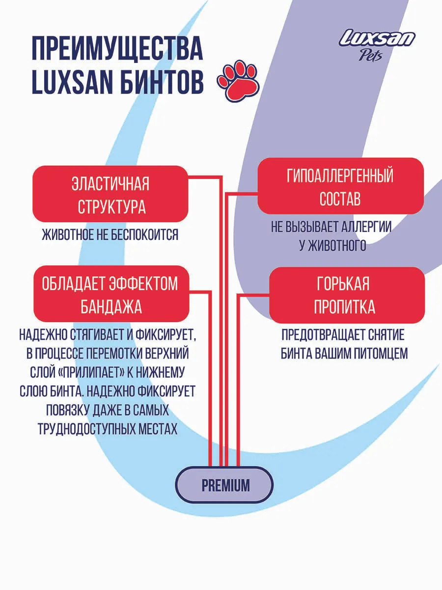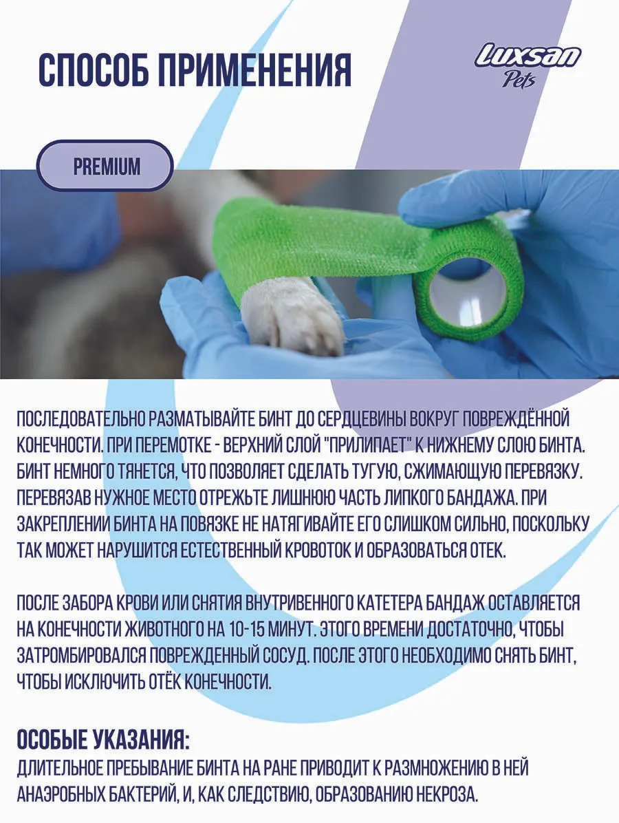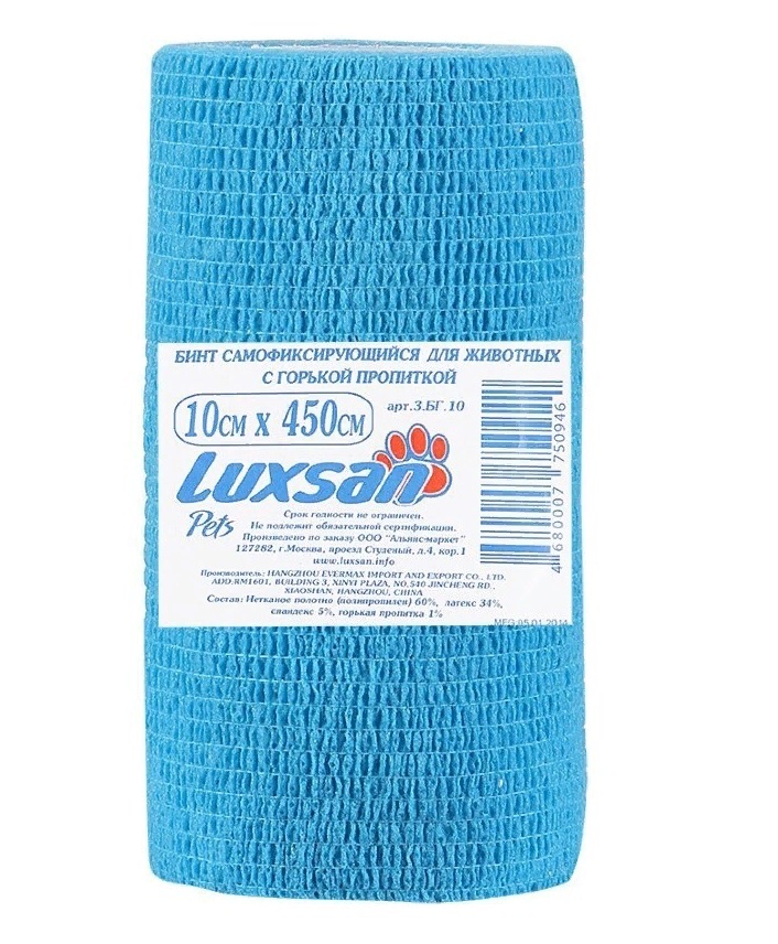 Бинт самофиксирующийся для животных Luxsan Pets, с горькой пропиткой, 10 см x 450 см