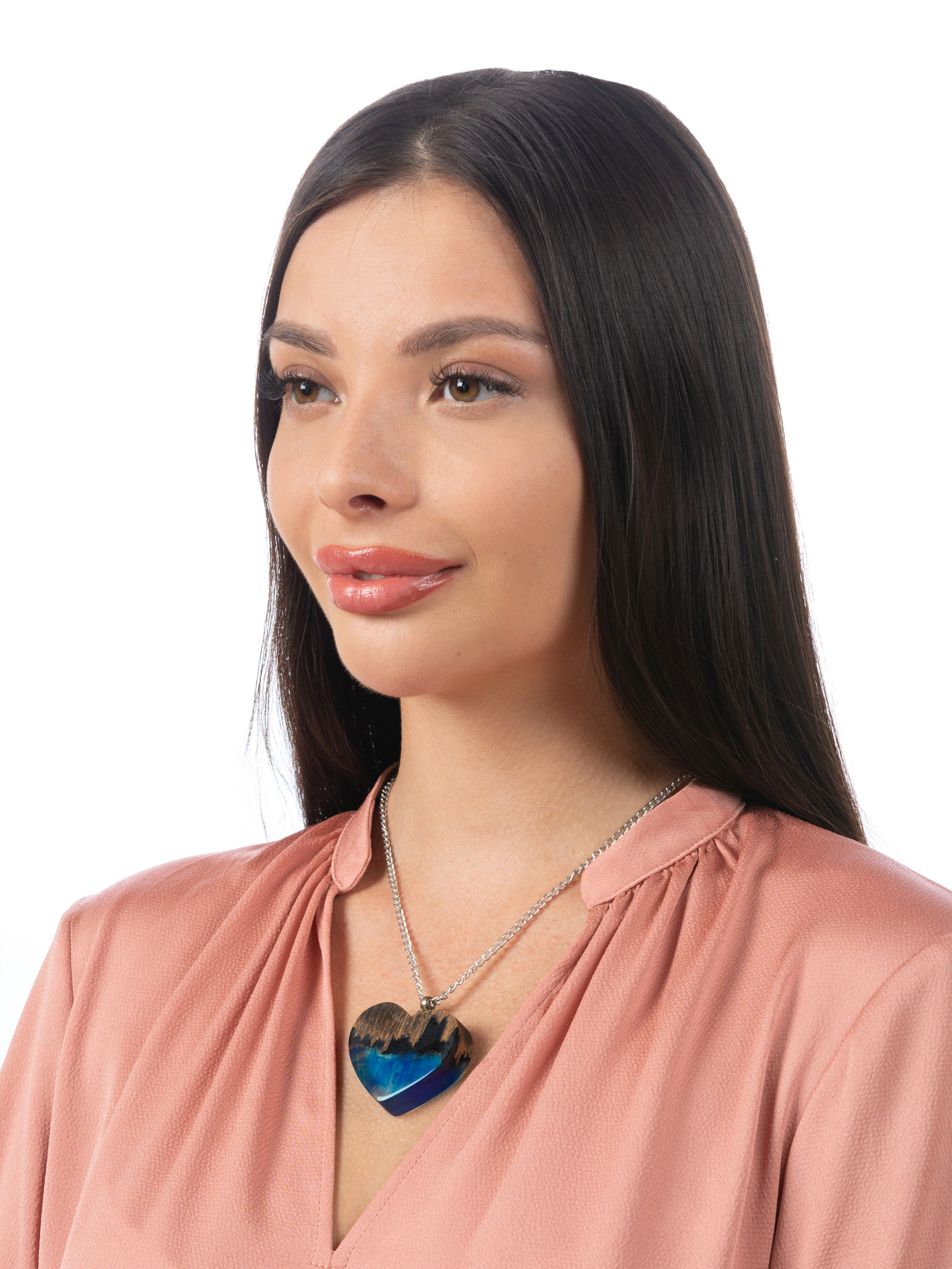 Кулон из натурального дерева авторский LuxuriouS Сердце синее. Ручная работа из экологически чистых материалов.