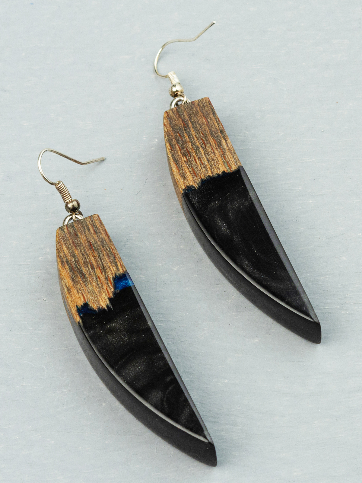 Серьги из массива дерева авторские LuxuriouS Черный огонь. Ручная работа из экологически чистых материалов.