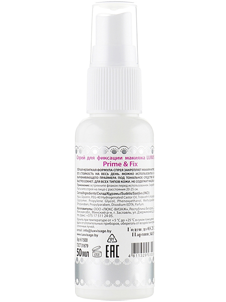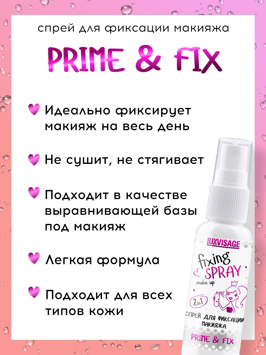 LUXVISAGE Спрей для фиксации макияжа Prime & Fix праймер, фиксация макияжа, увлажнение