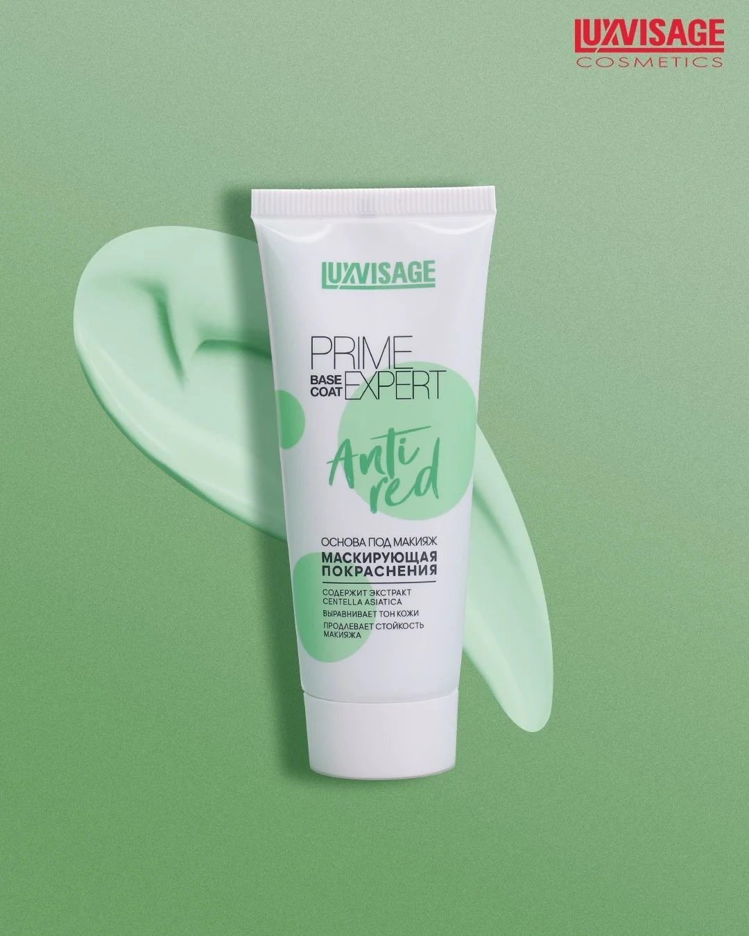 Luxvisage Основа под макияж для лица маскирующая покраснения PRIME EXPERT Anti Red 35г