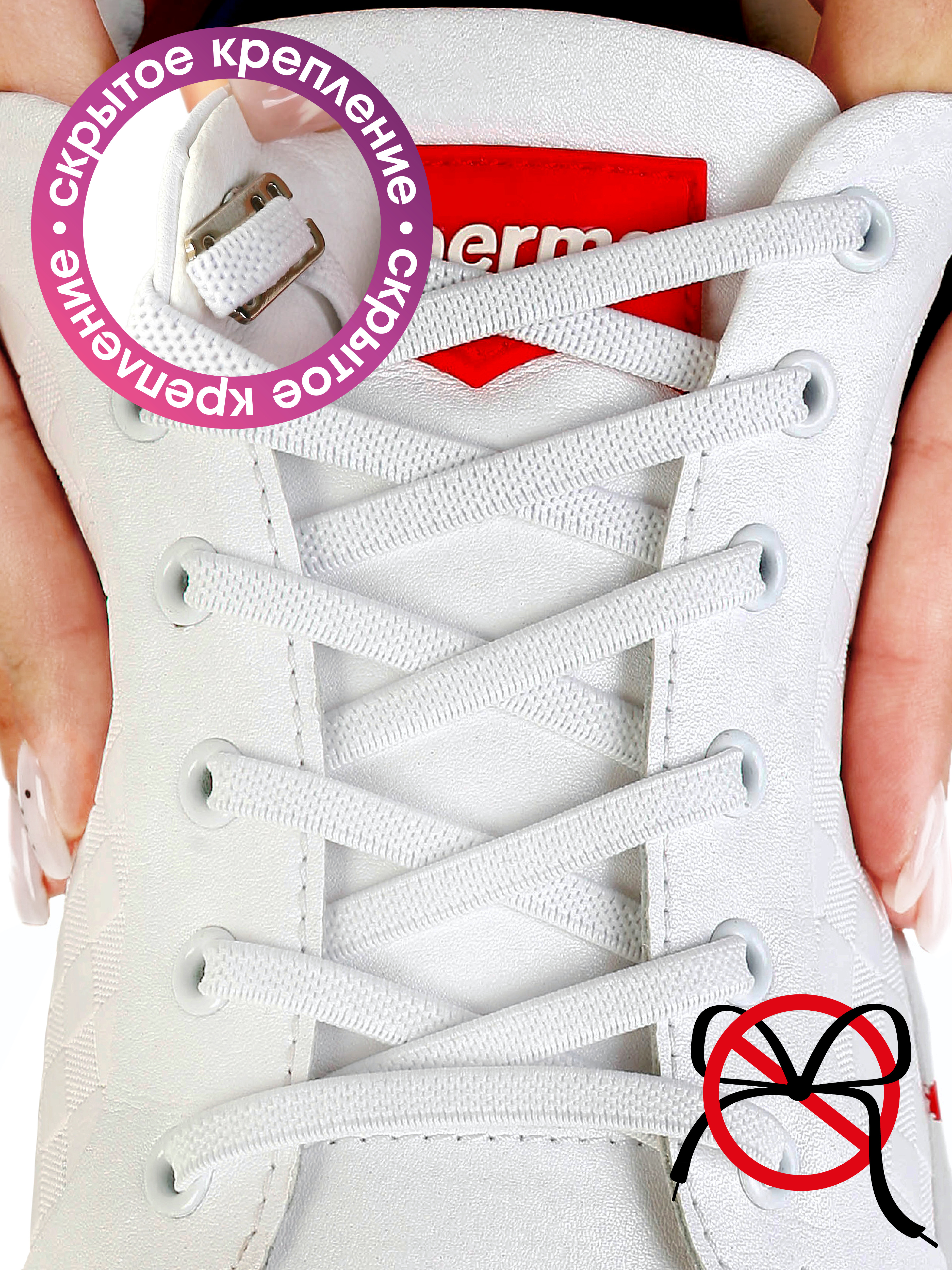 Шнурки для обуви, шнурки эластичные Shnurkoff, шнурки резинки для обуви, белый