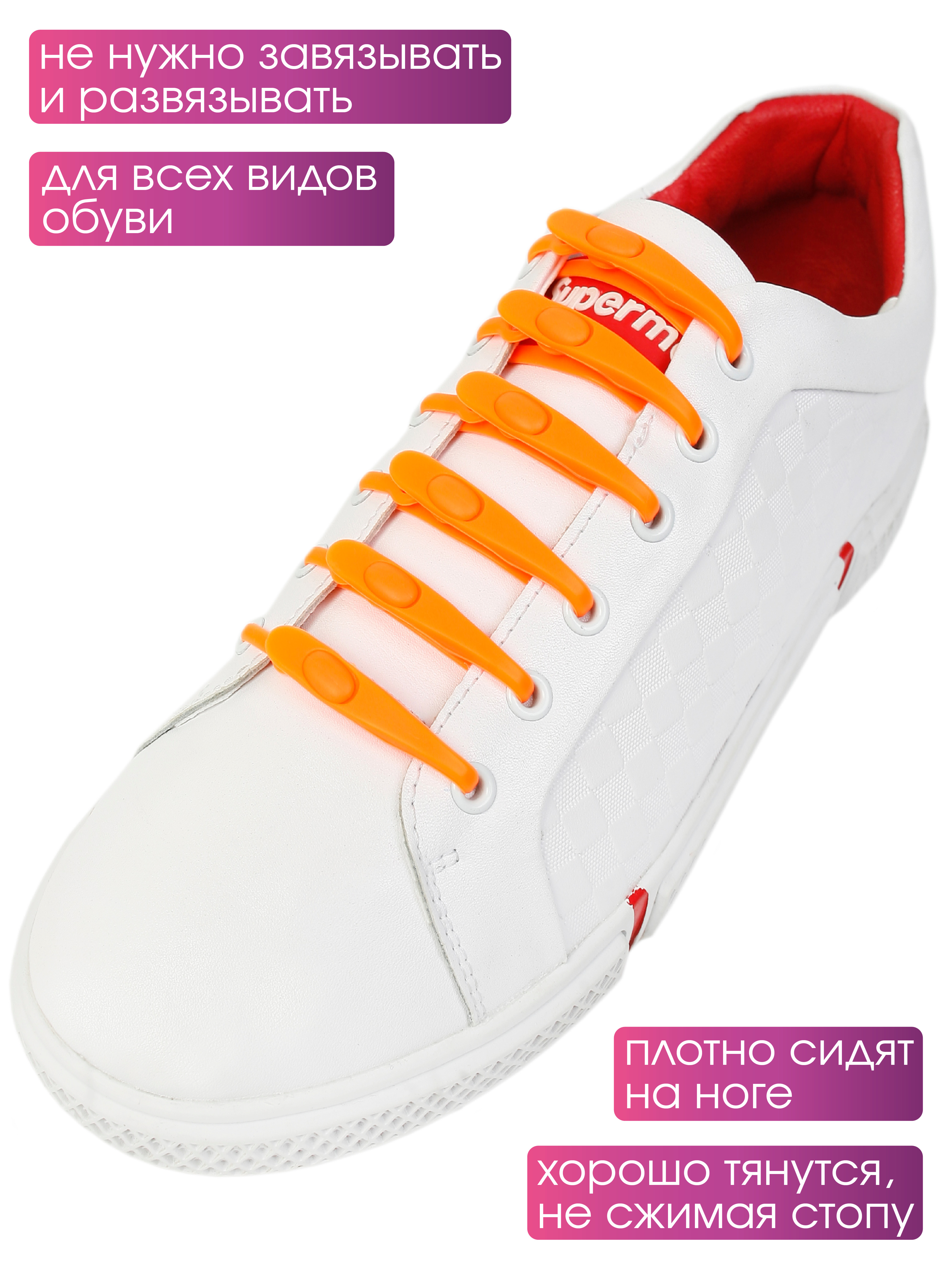 Шнурки для обуви, силиконовые шнурки Shnurkoff, резиновые шнурки для обуви без завязок, набор 16 шнурков, 8 пар, оранжевый
