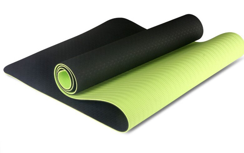 Коврик для йоги и фитнеса LVP, 183x61x0,6 см, двухслойный TPE цвет: зеленый, черный