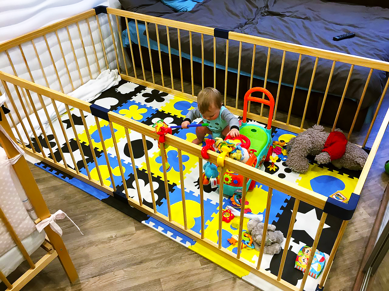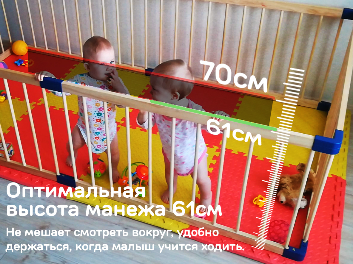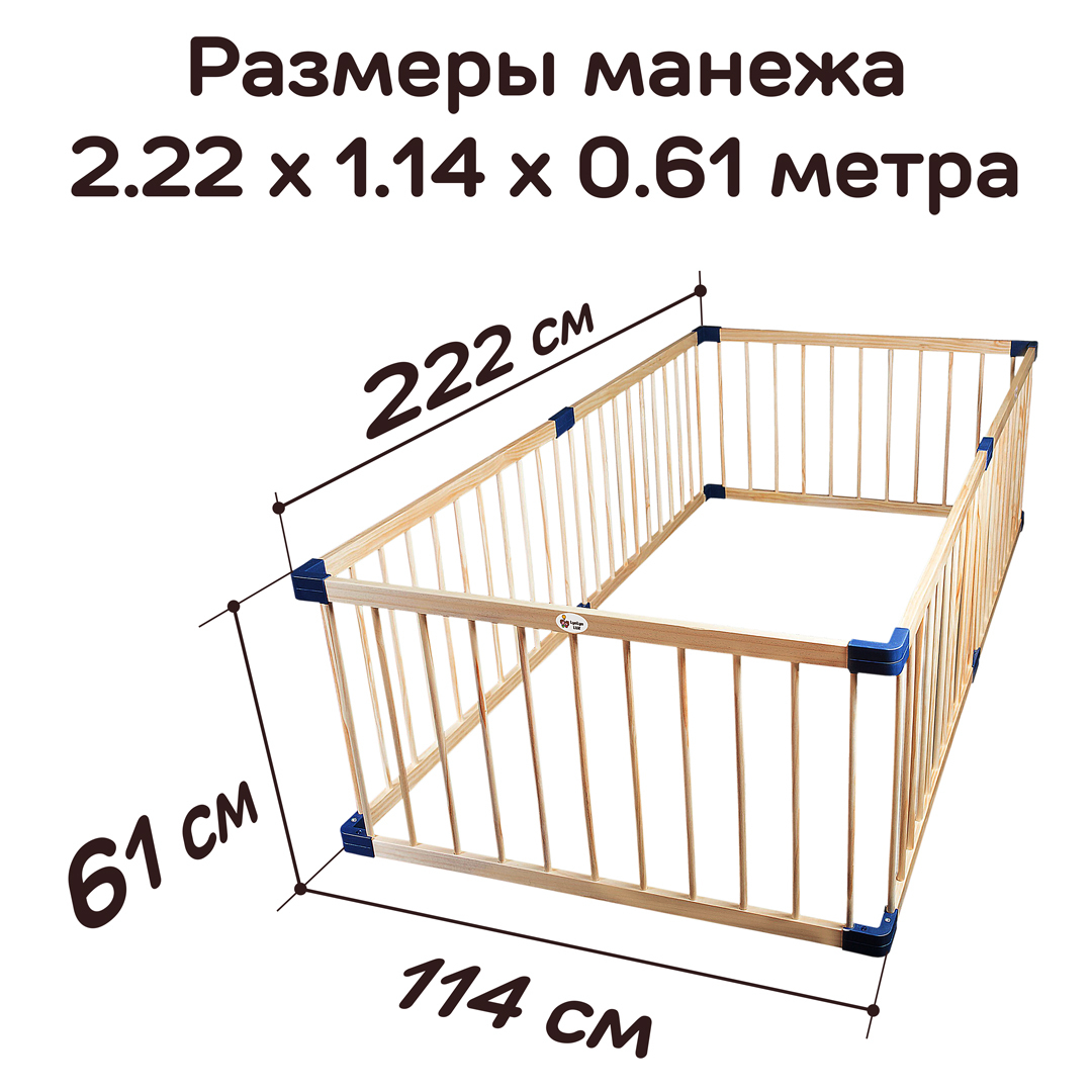 Деревянным манеж LYALYALUX SL139-6XPE21, калитка, коврик цветной, 2.22x1.14м 6 секций