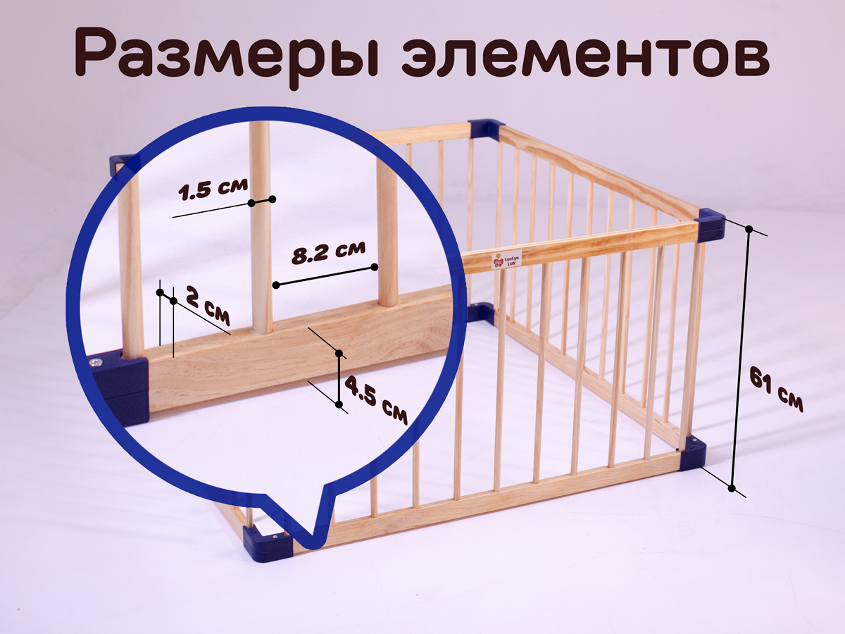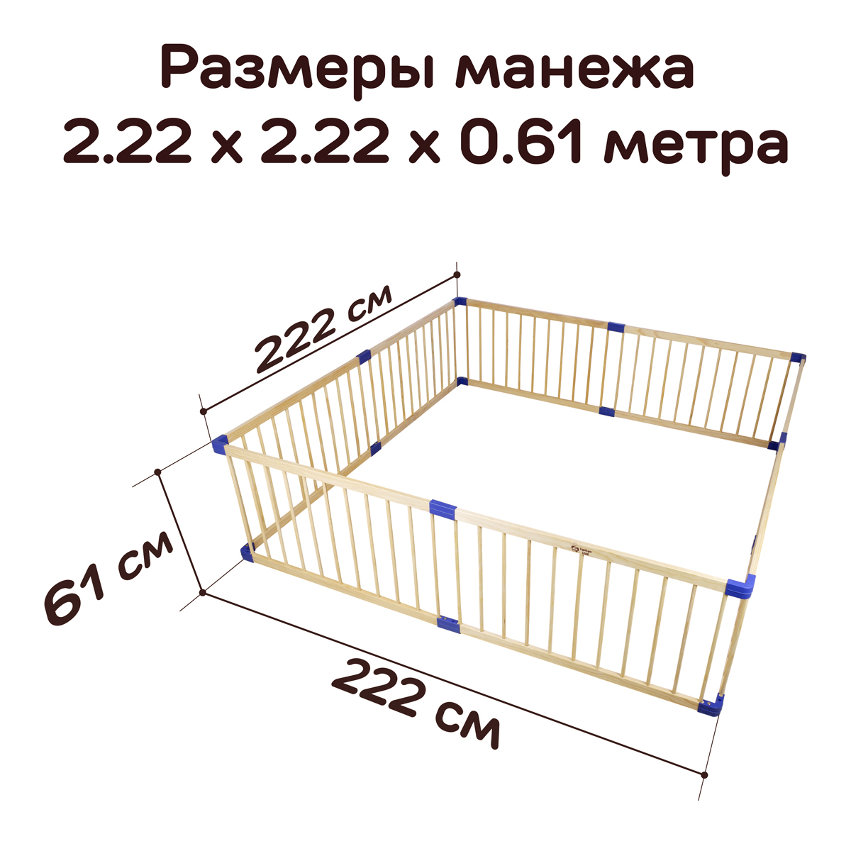 Деревянным манеж LYALYALUX SL139XPE21 2.22x2.22м, 8 секций, коврики цветные