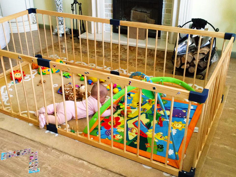 Деревянным манеж LYALYALUX SL139-6XPE35WGHT, калитка коврик белый 2.22x1.14м 6 секций