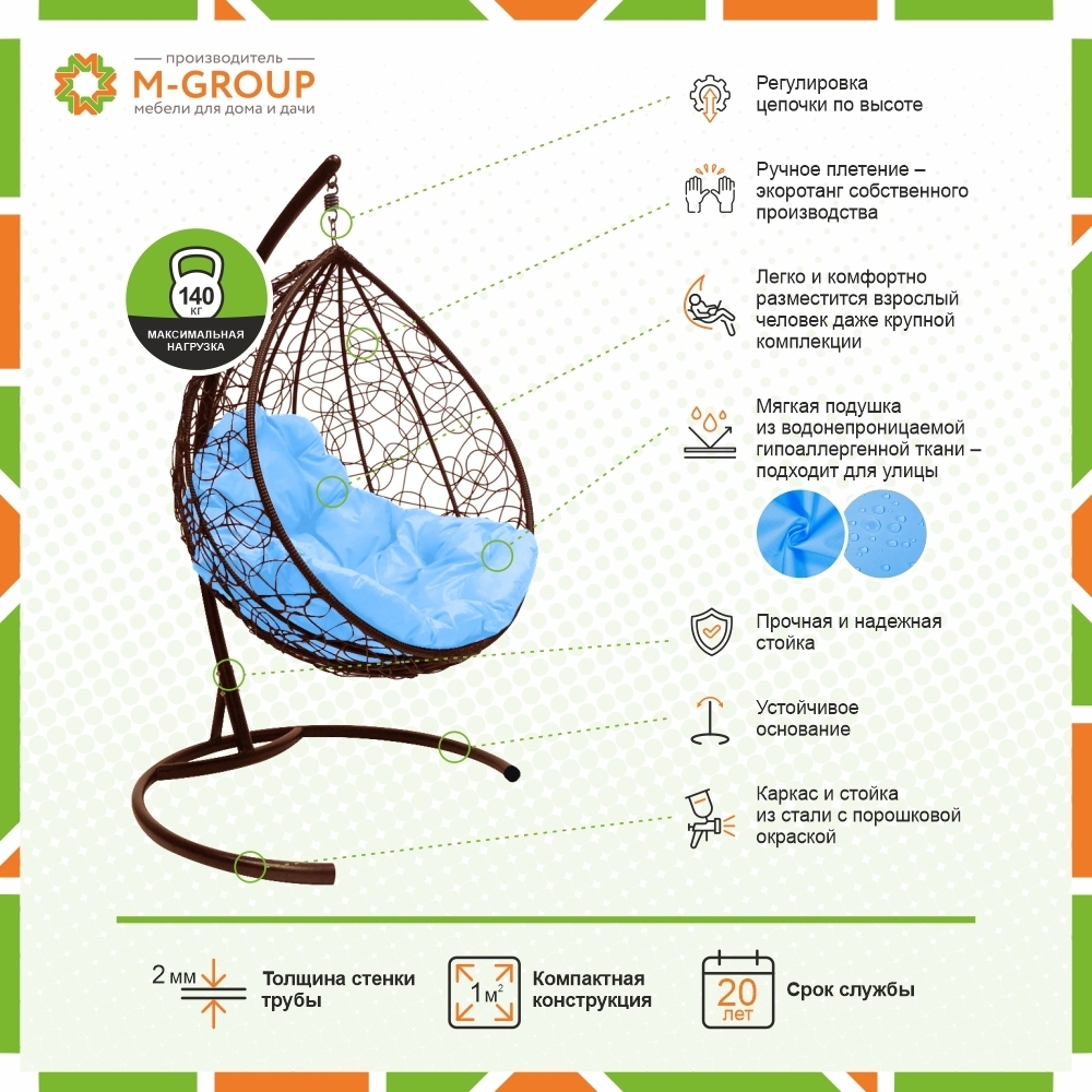 Подвесное кресло садовое 86х68х180 см, M-GROUP Веер