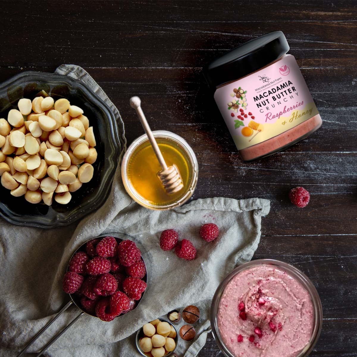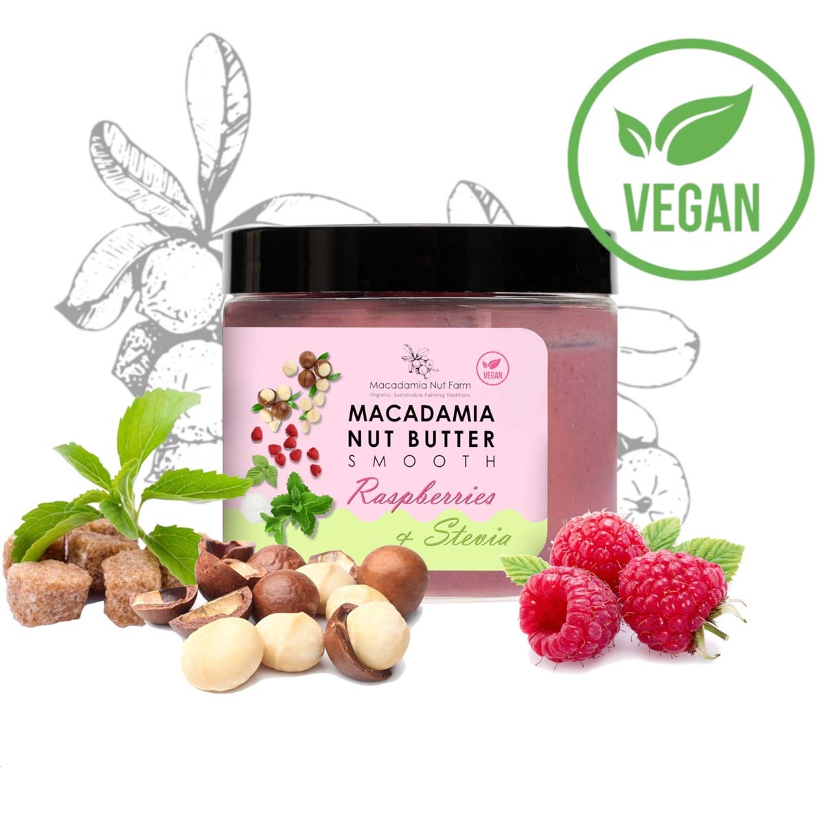 Крем-масло ореховое из ореха Макадамия со стевией и малиной Macadamia Nut Farm, без сахара 180г