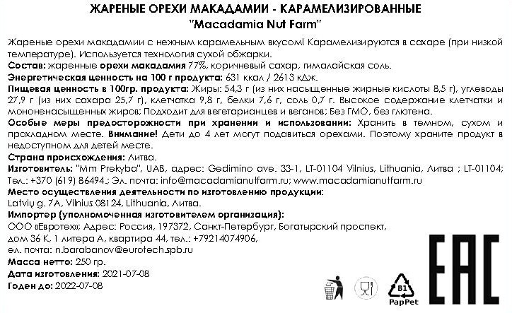 Орехи Макадамия без скорлупы Macadamia Nut Farm солёные, 250г