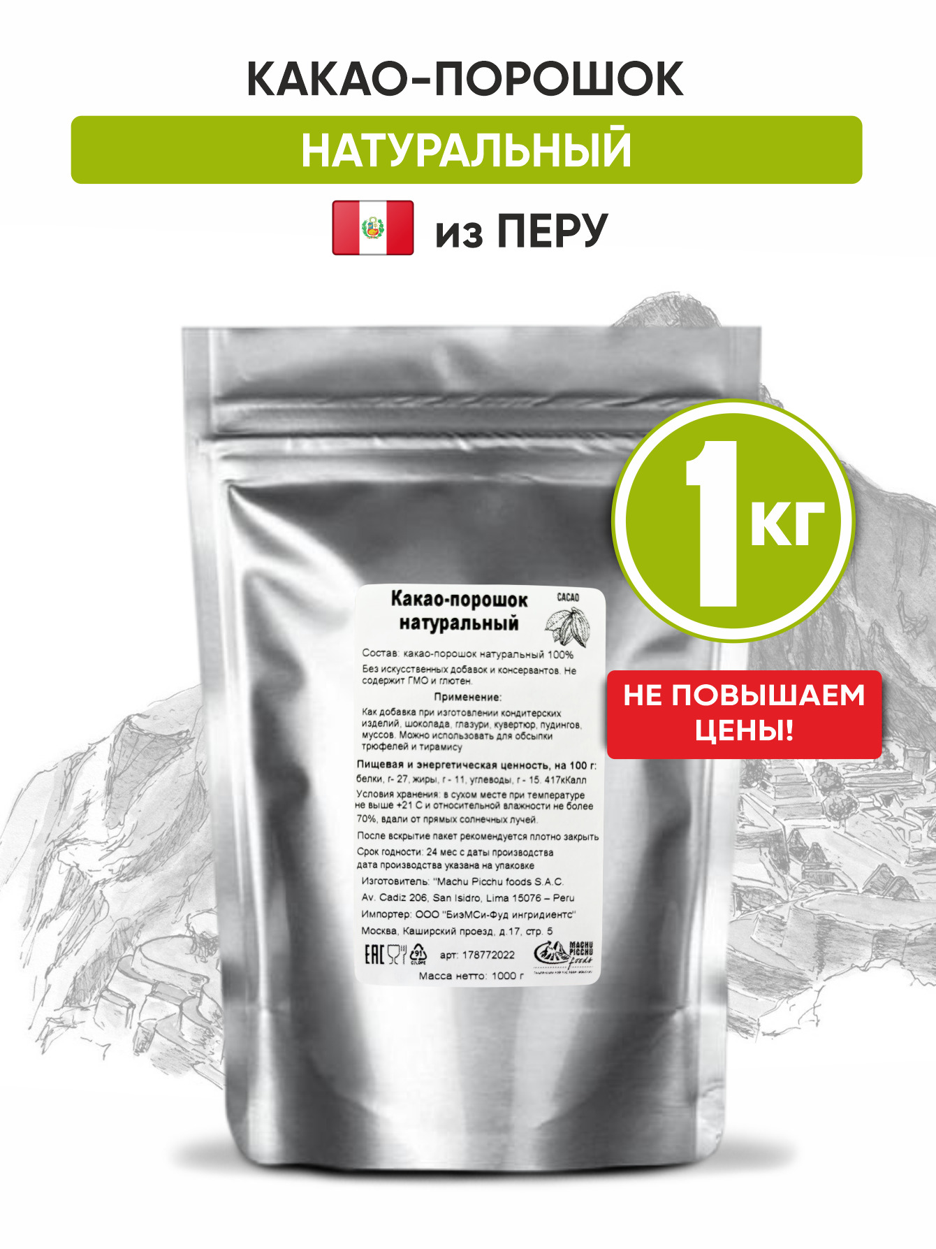 Какао порошок натуральный, неалкализованный, без добавок и сахара. Machu Picchu, производство Перу, горячий шоколад, cacao