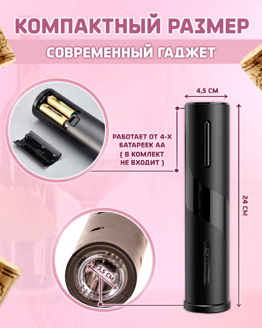Электрический штопор M&A.corp С резаком для фольги, черный