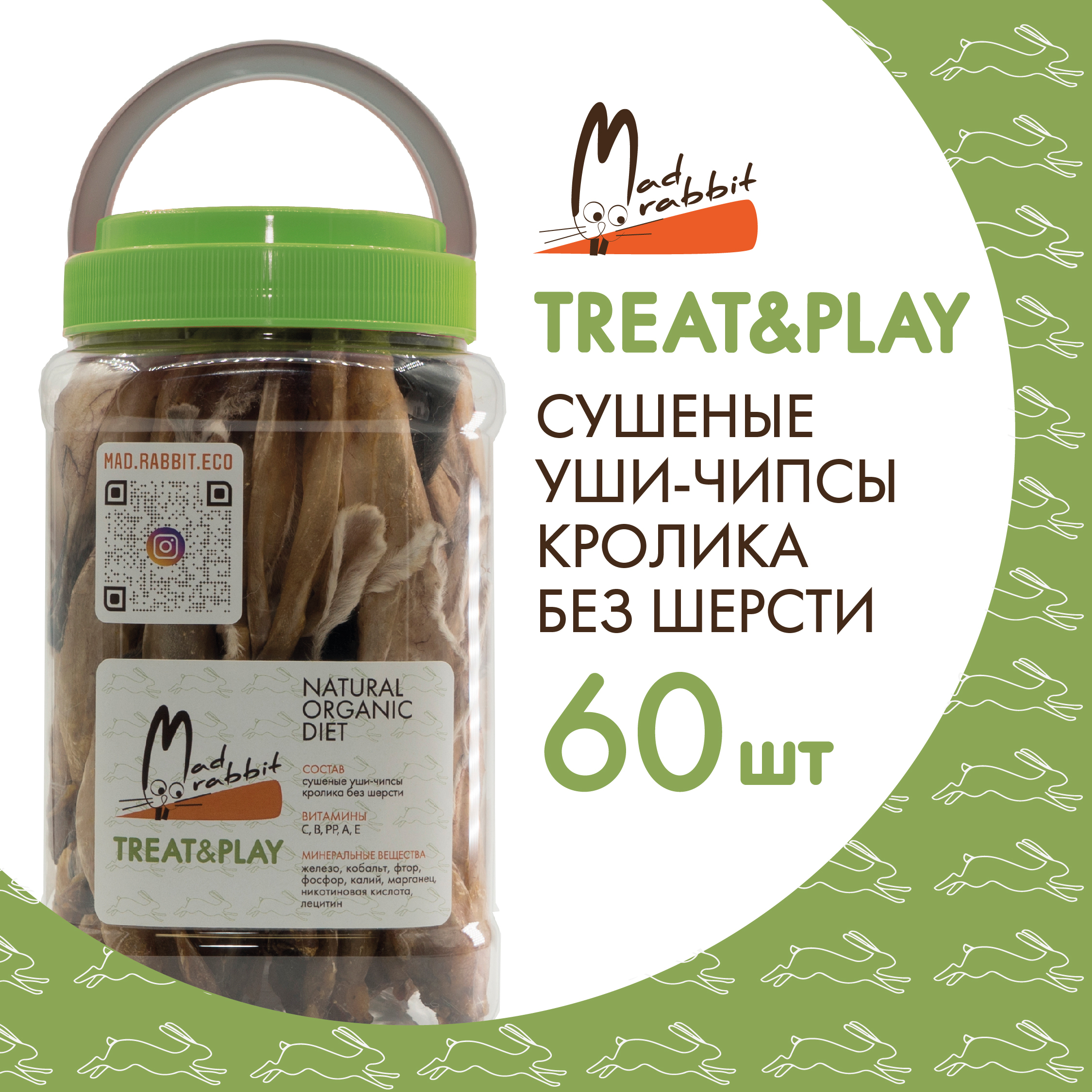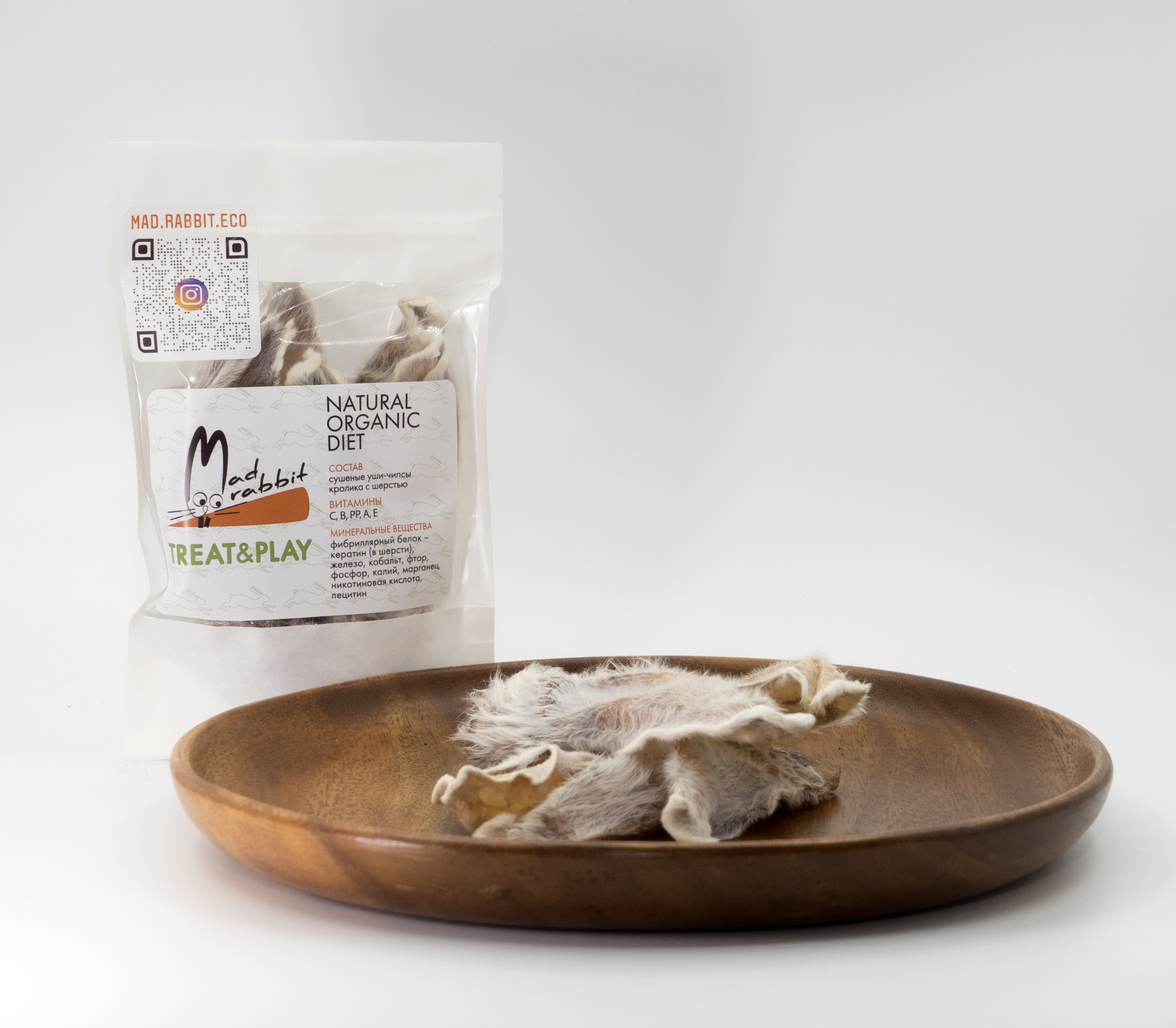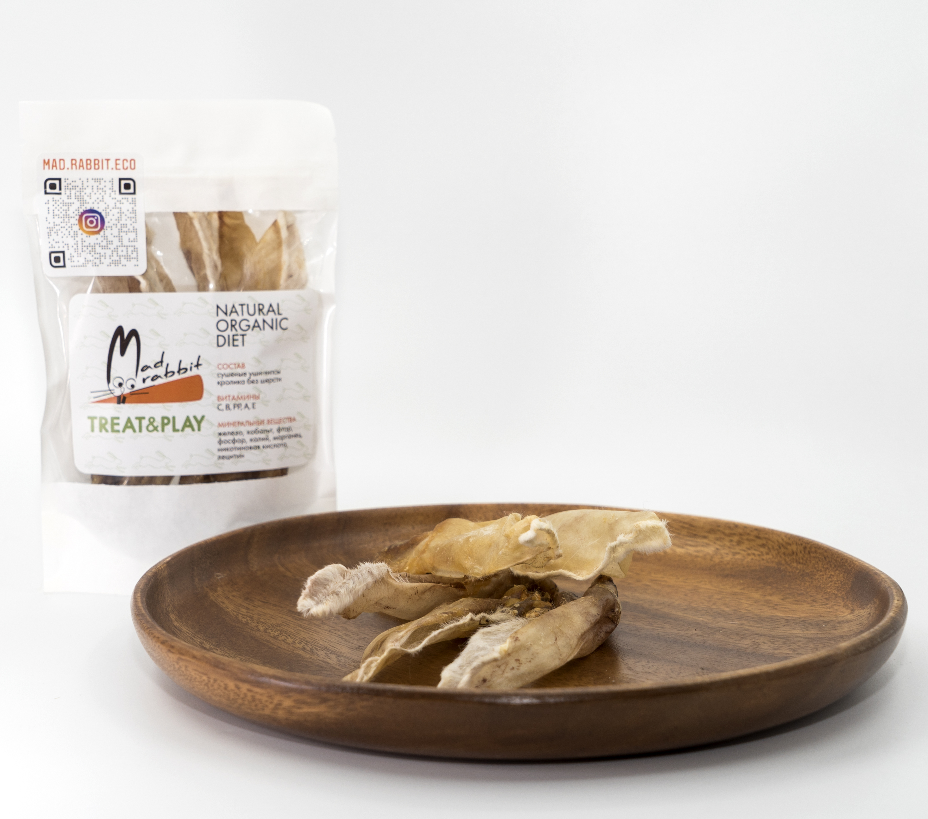 Сушеные уши-чипсы кролика очищенные, природное очищение зубов, игрушка, 60 ушей