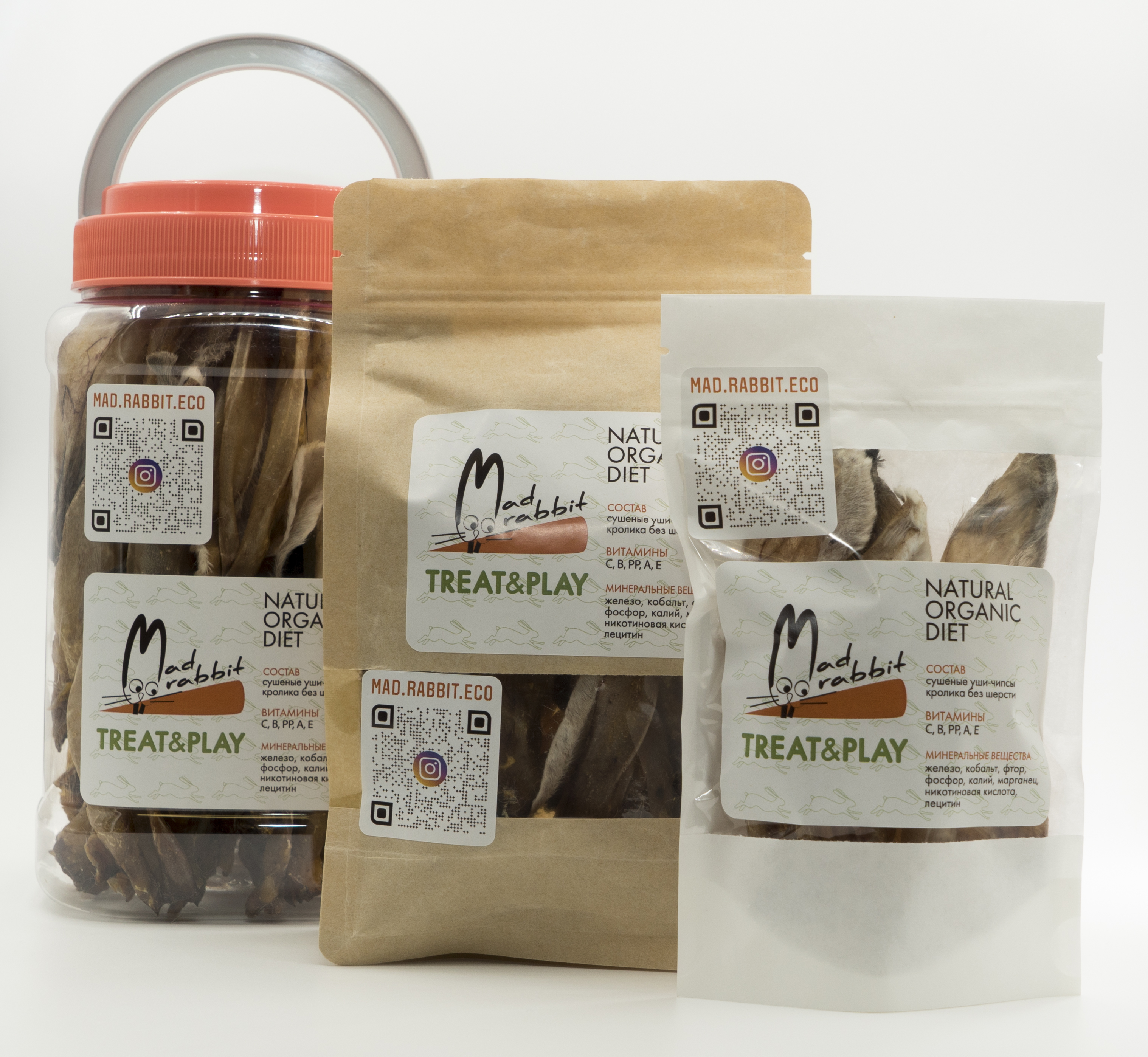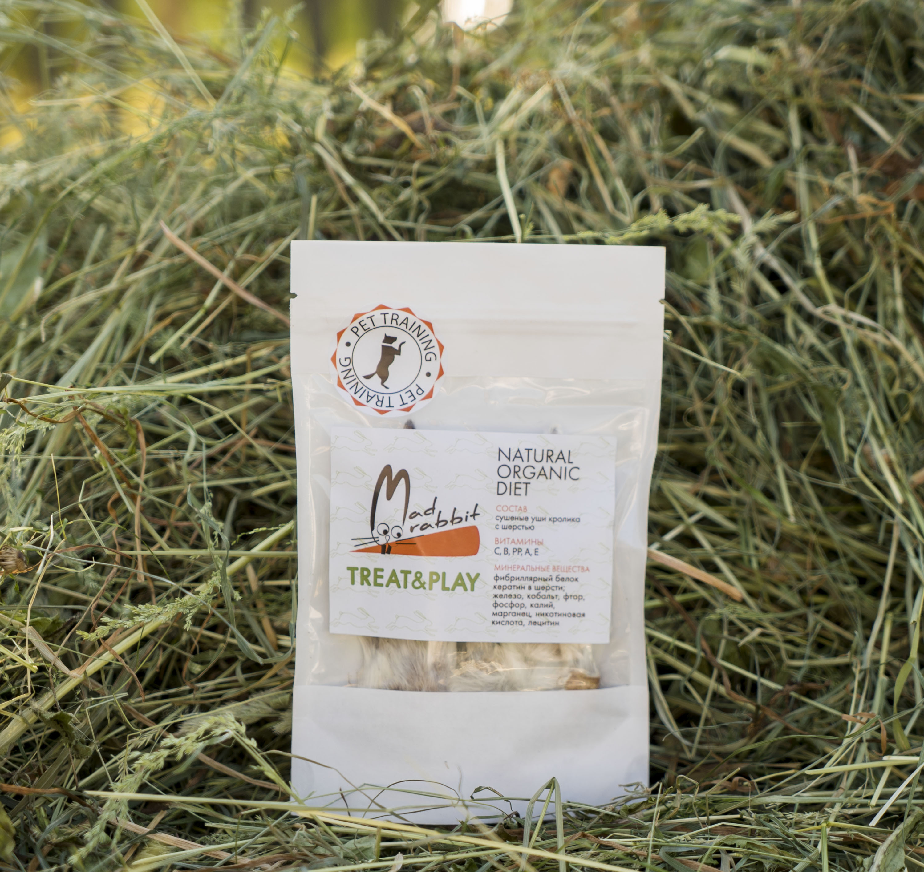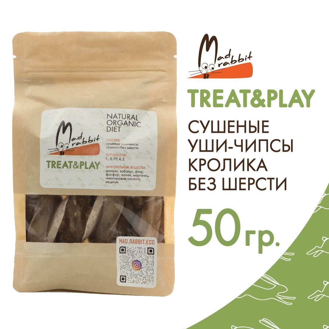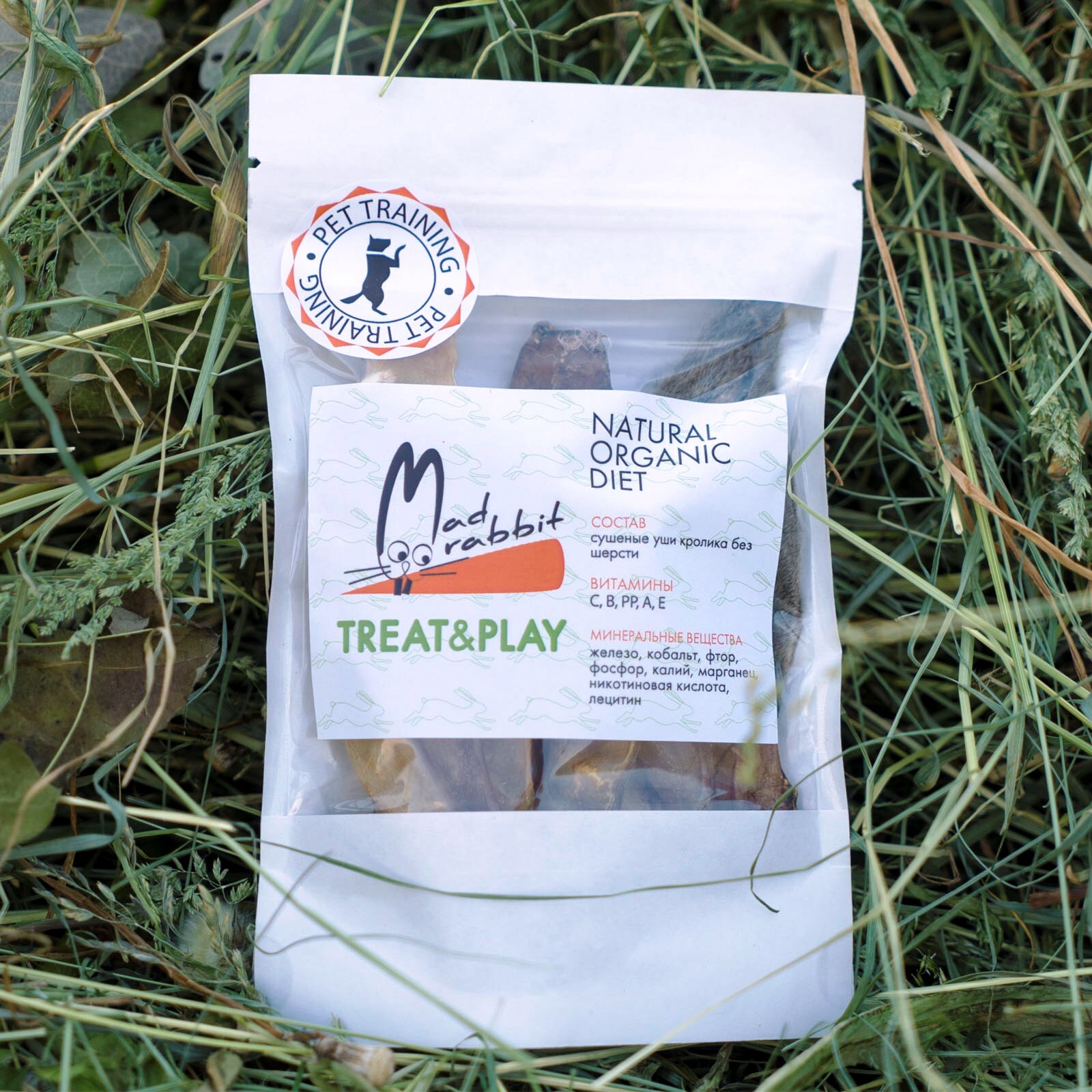 Сушеные уши-чипсы кролика очищенные, природное очищение зубов, игрушка, 60 ушей