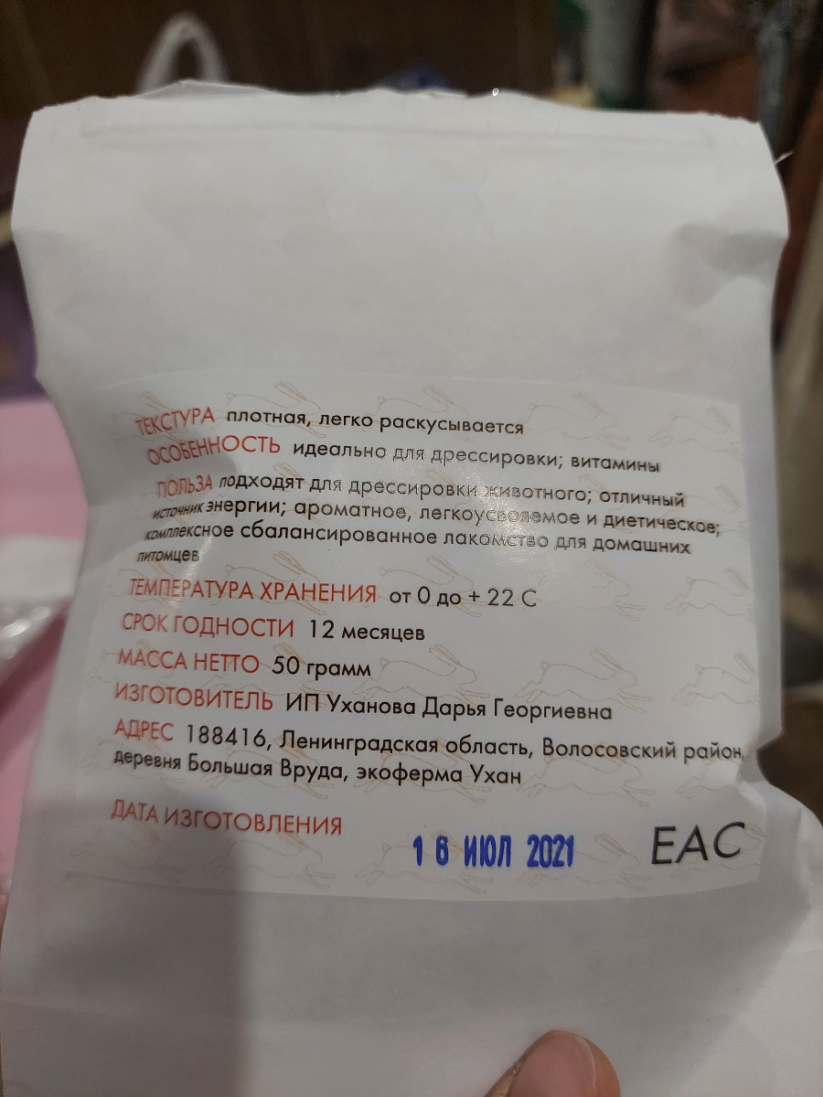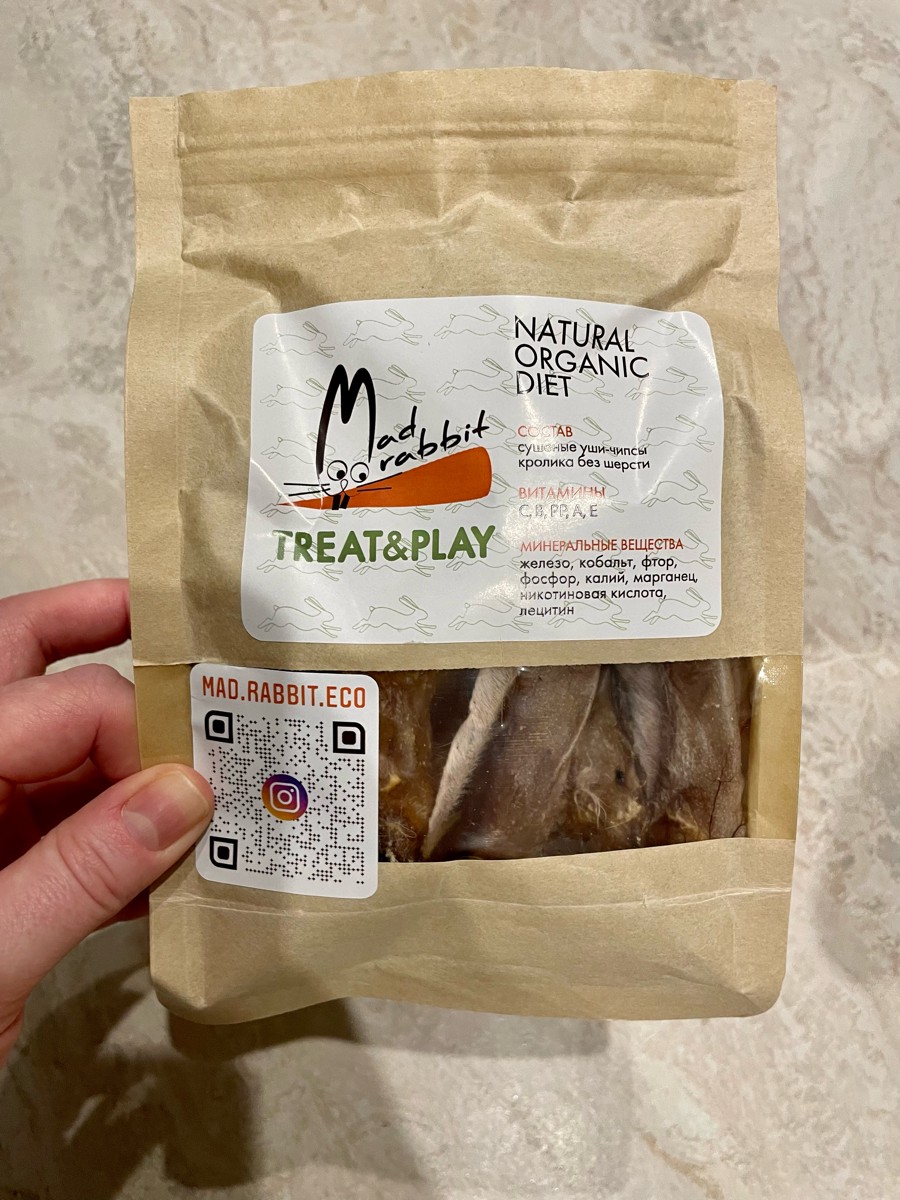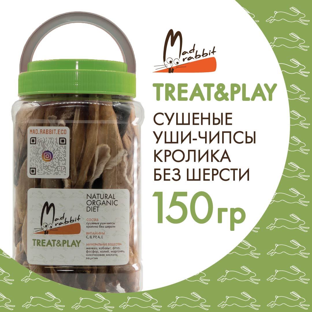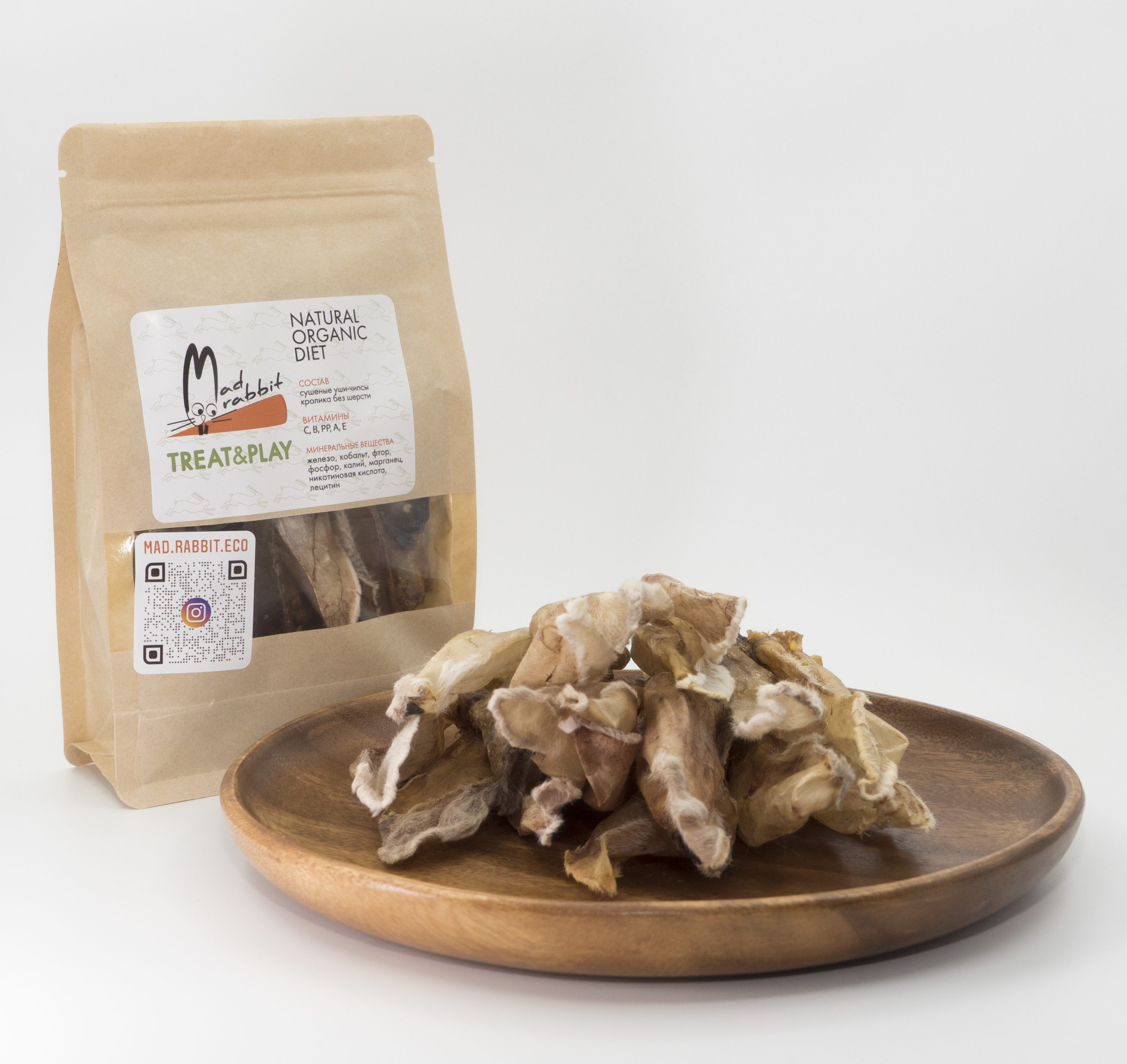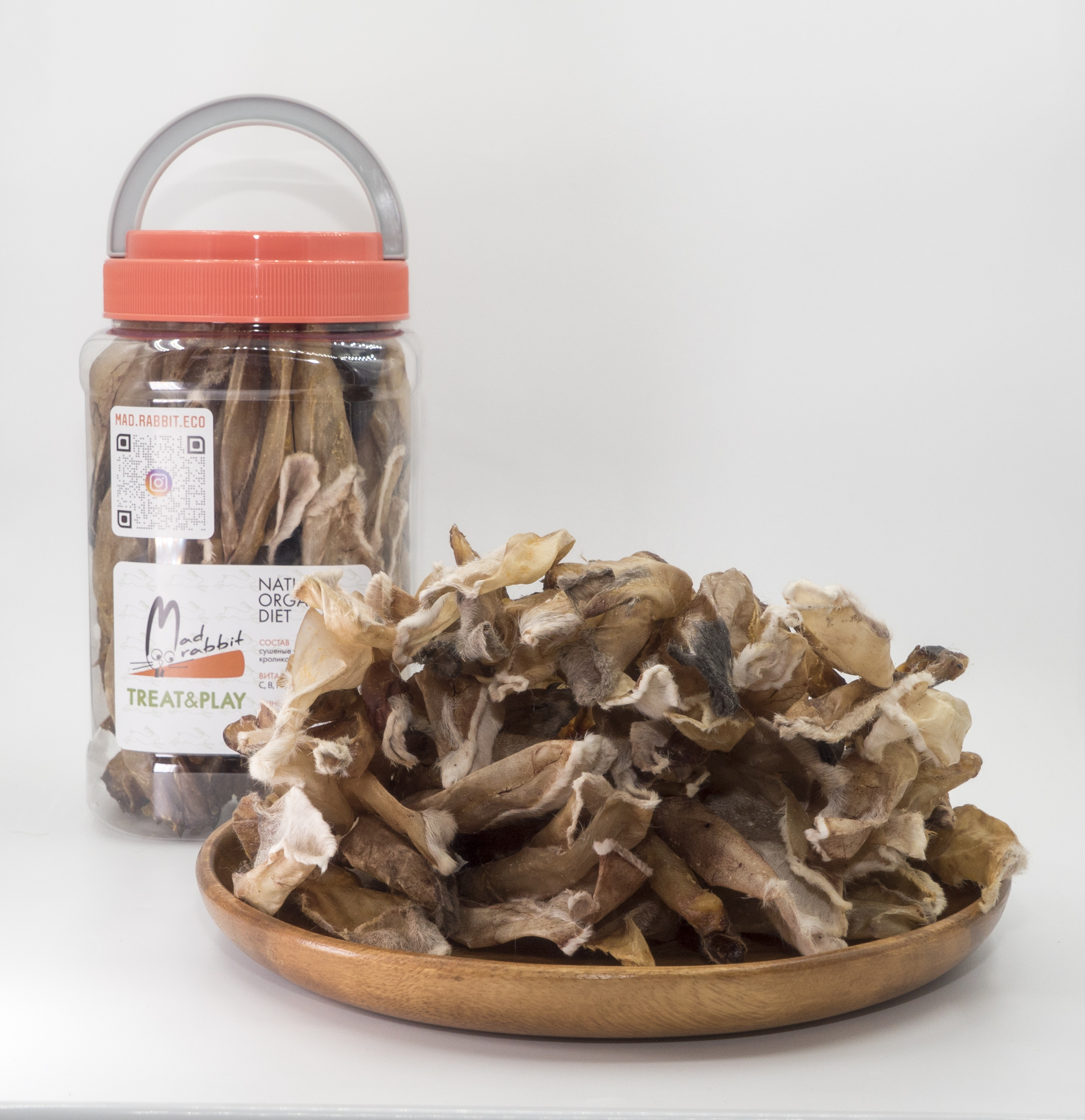 Сушеные уши-чипсы кролика очищенные, природное очищение зубов, игрушка, 150 грамм, 30-60 ушей