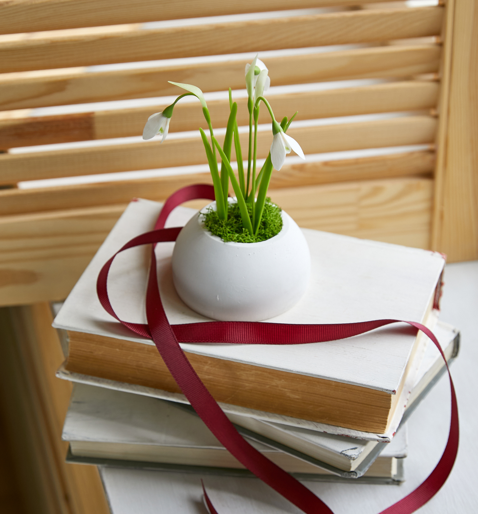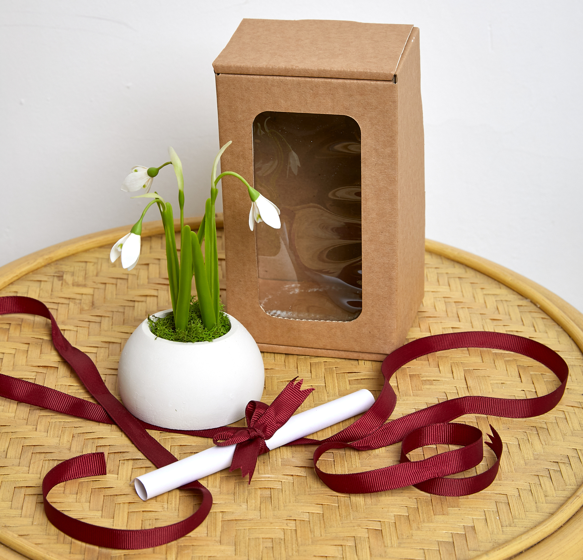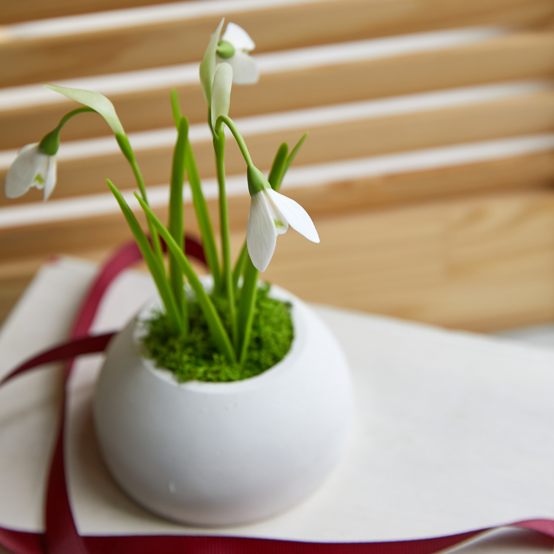Подснежники из холодного фарфора. 3 шт. Скульптура. Подарочная упаковка