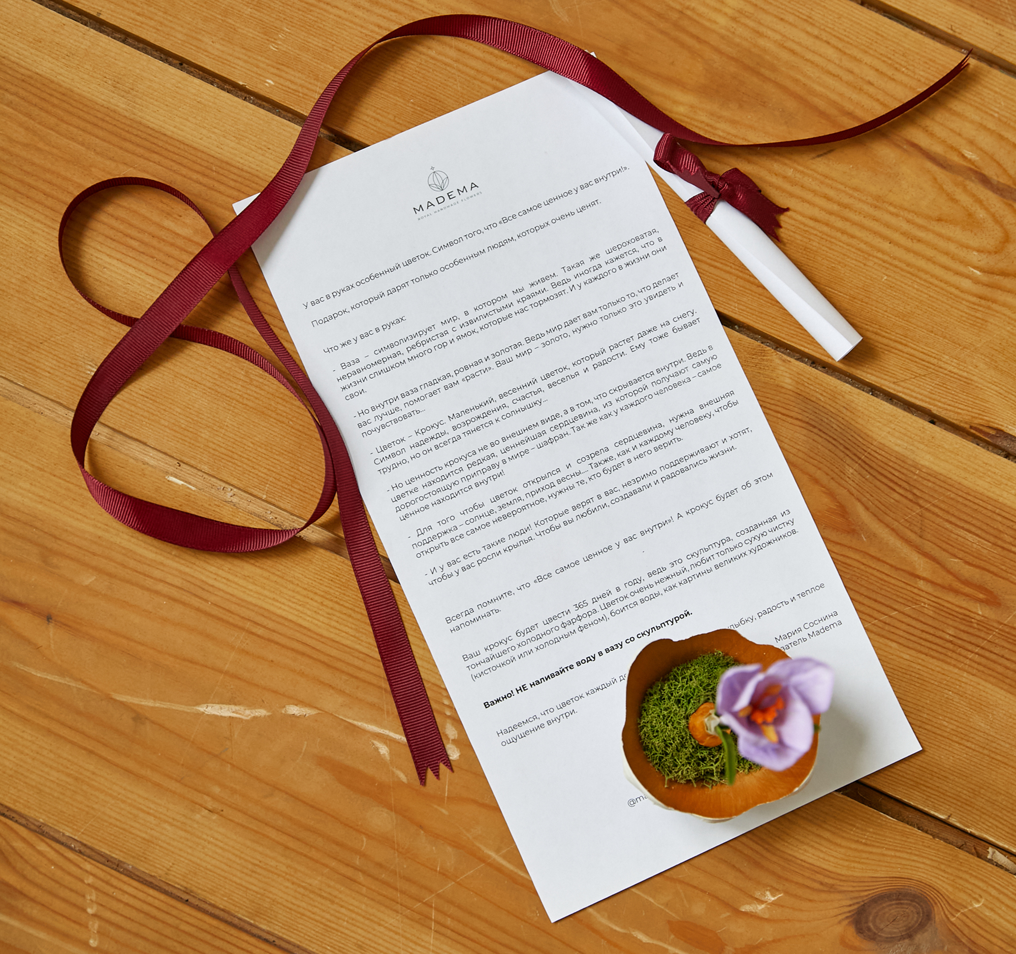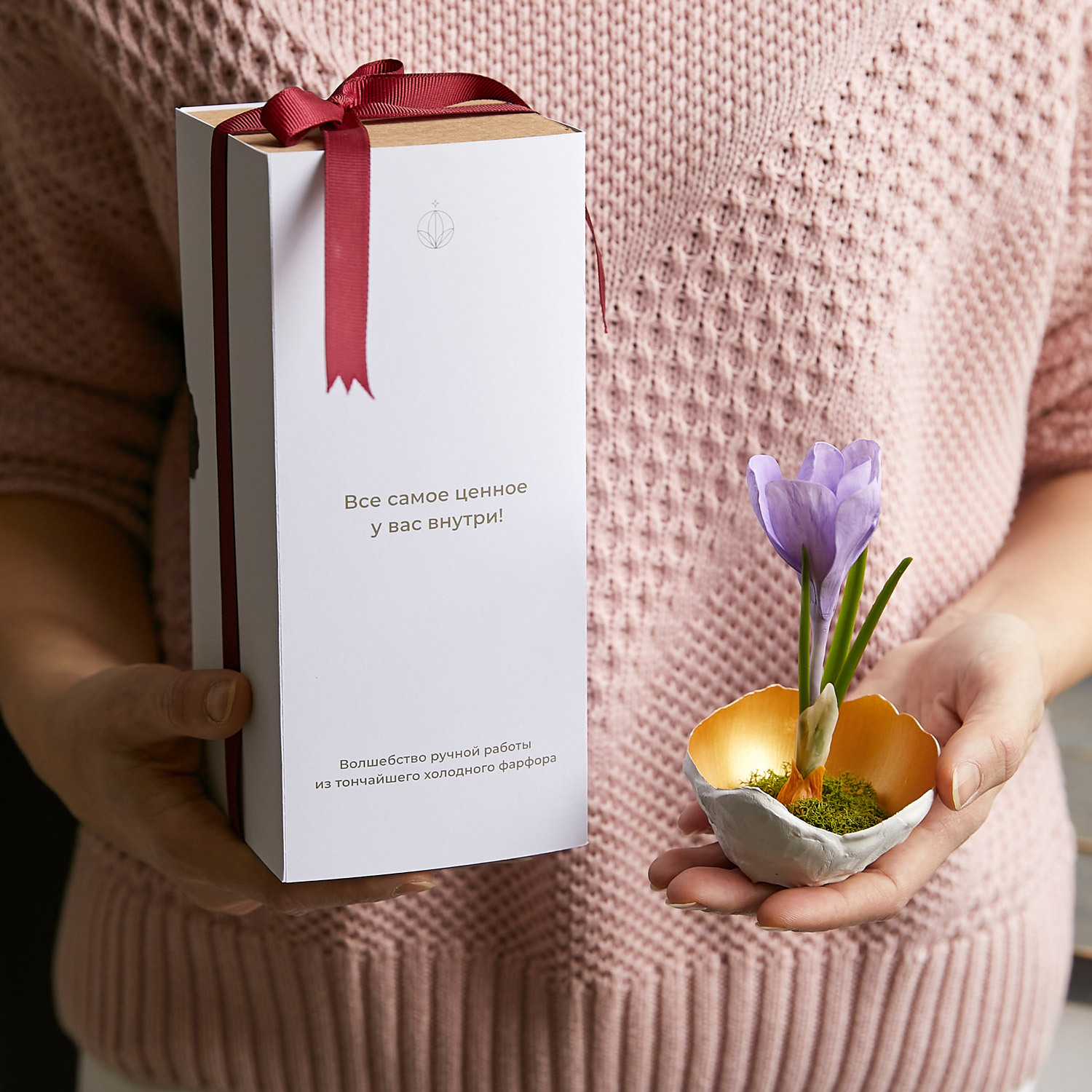 Крокус ручной работы из холодного фарфора в подарочной упаковке