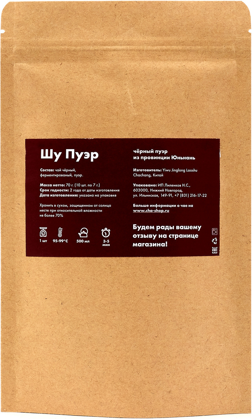 Чай шу пуэр Черное золото, мини квадрат (10 шт. по 7 гр.), 70 гр.