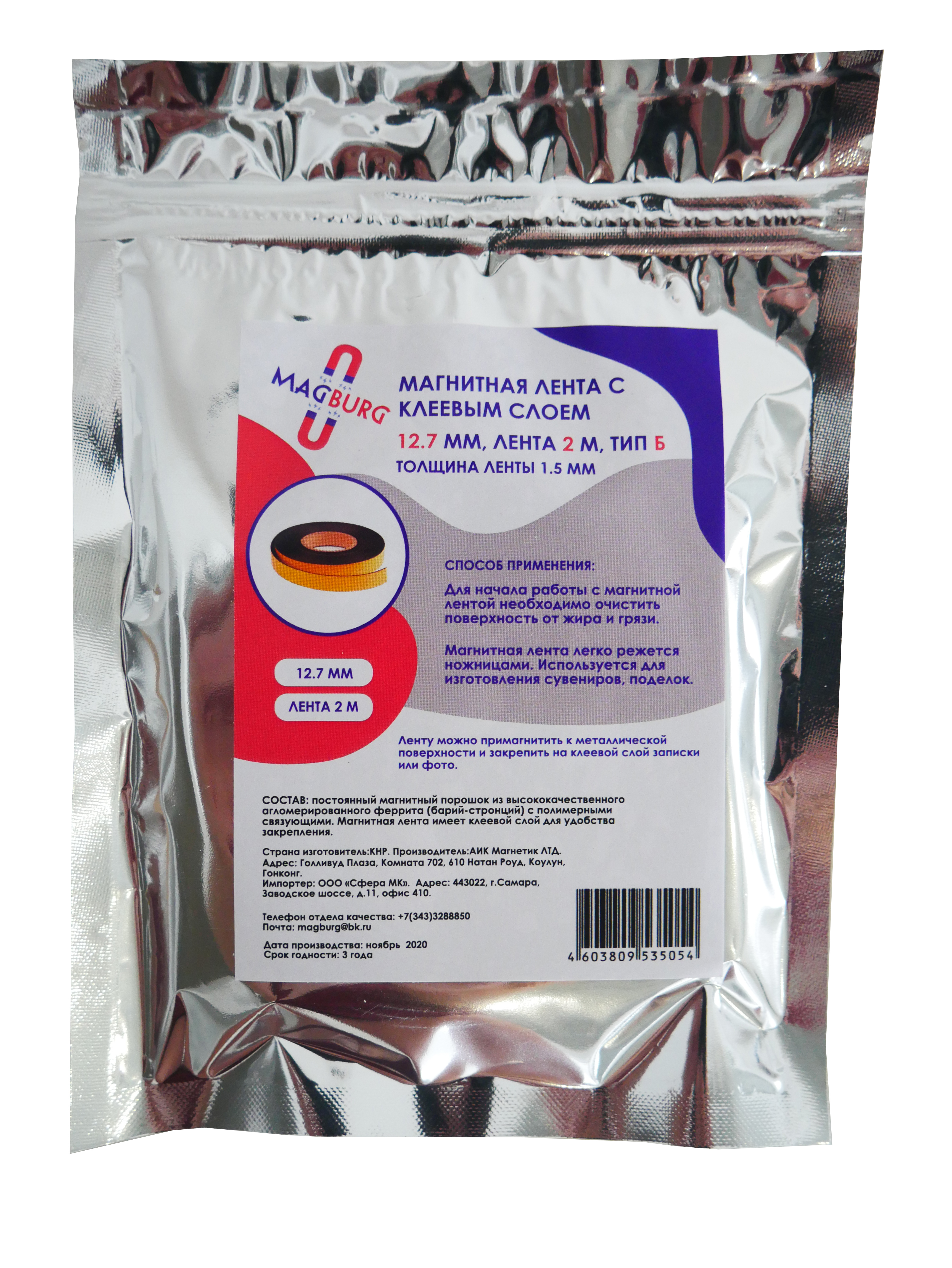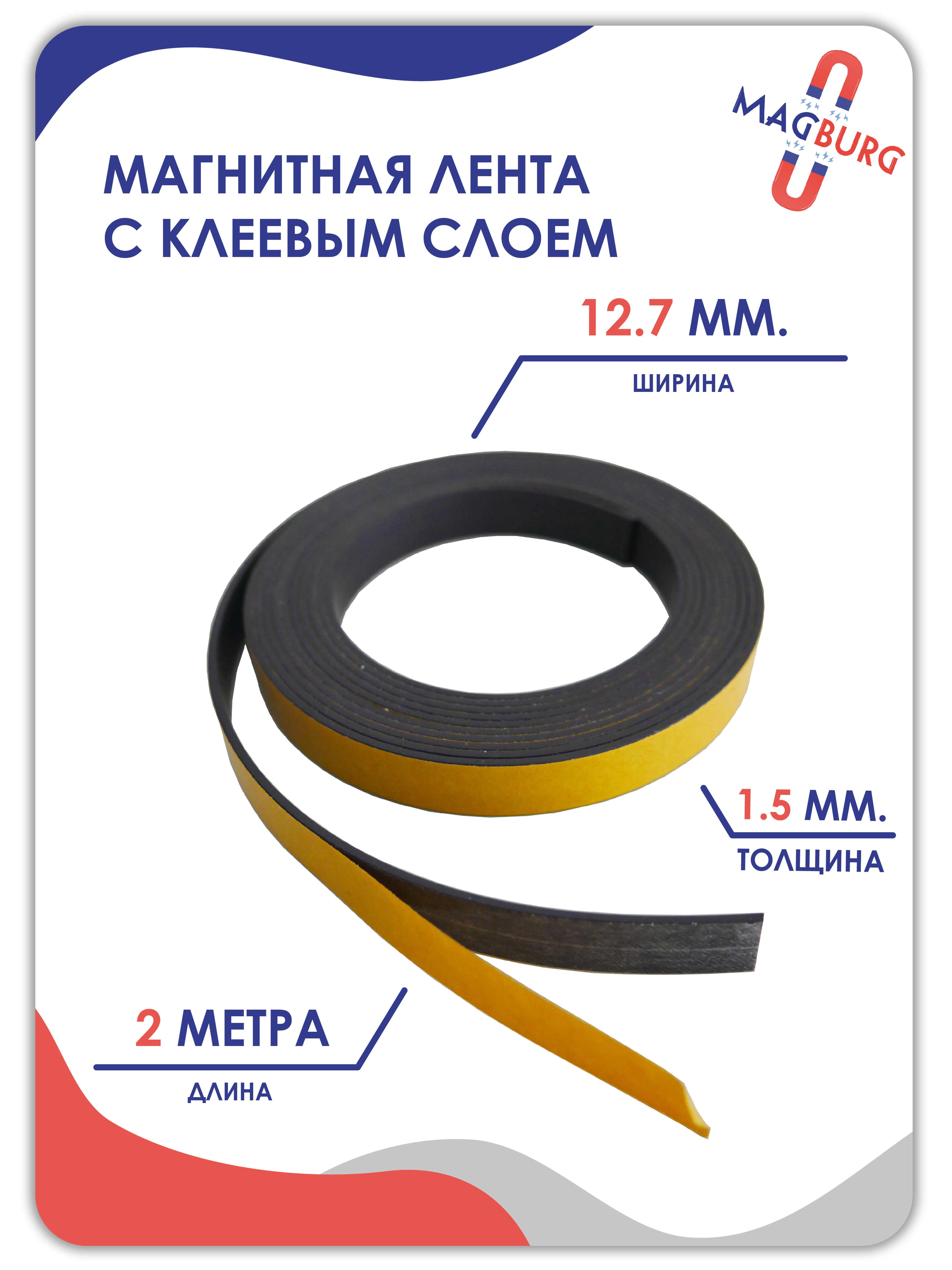 Магнитная лента Magburg с клеевым слоем (самоклеющаяся) 12.7 мм, рулон 1.5 метра