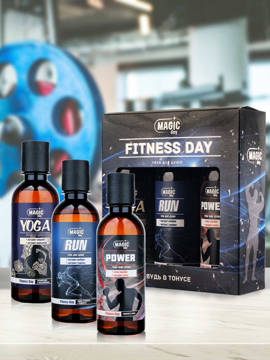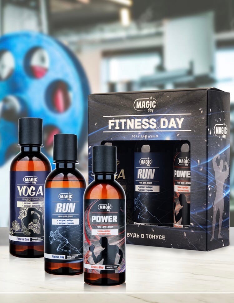Magic Day / Подарочный Набор Гелей для душа Fitness DAY, 250 мл 3 шт. мужской/женский