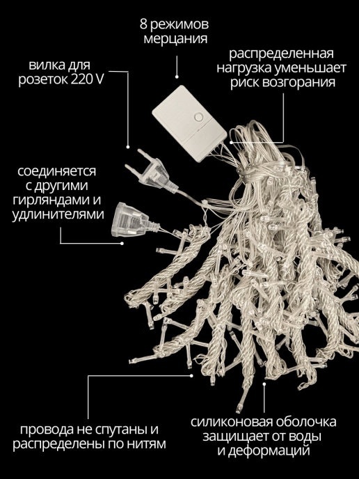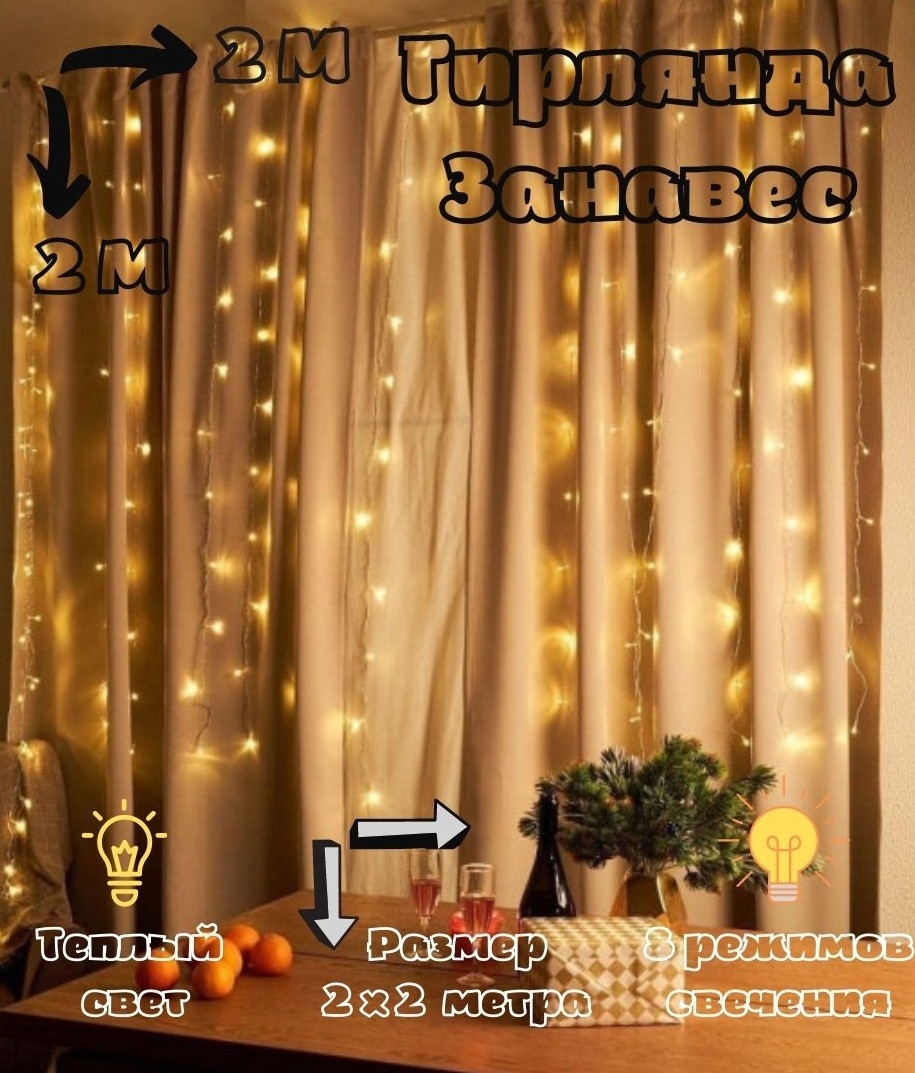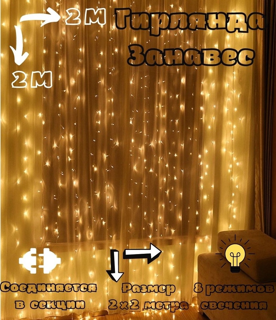 Электрогирлянда интерьерная Штора Magic Goods Светодиодная 140 ламп, 2 м, питание От сети 220В, 1 шт