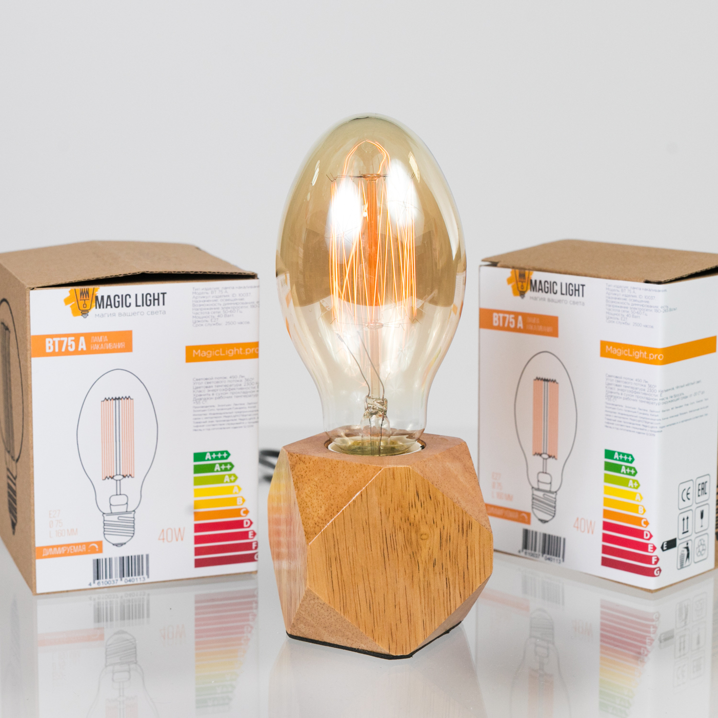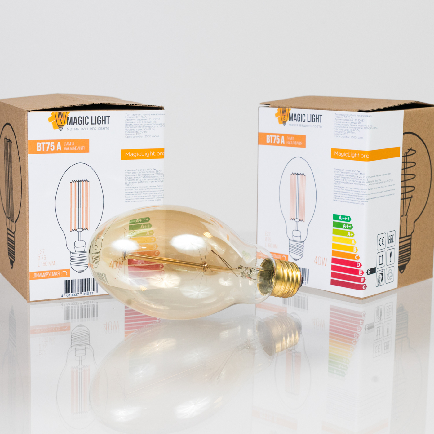Лампочка Magic Light Эдисона BT 75 A, Теплый белый свет, E27, Накаливания, 1 шт.