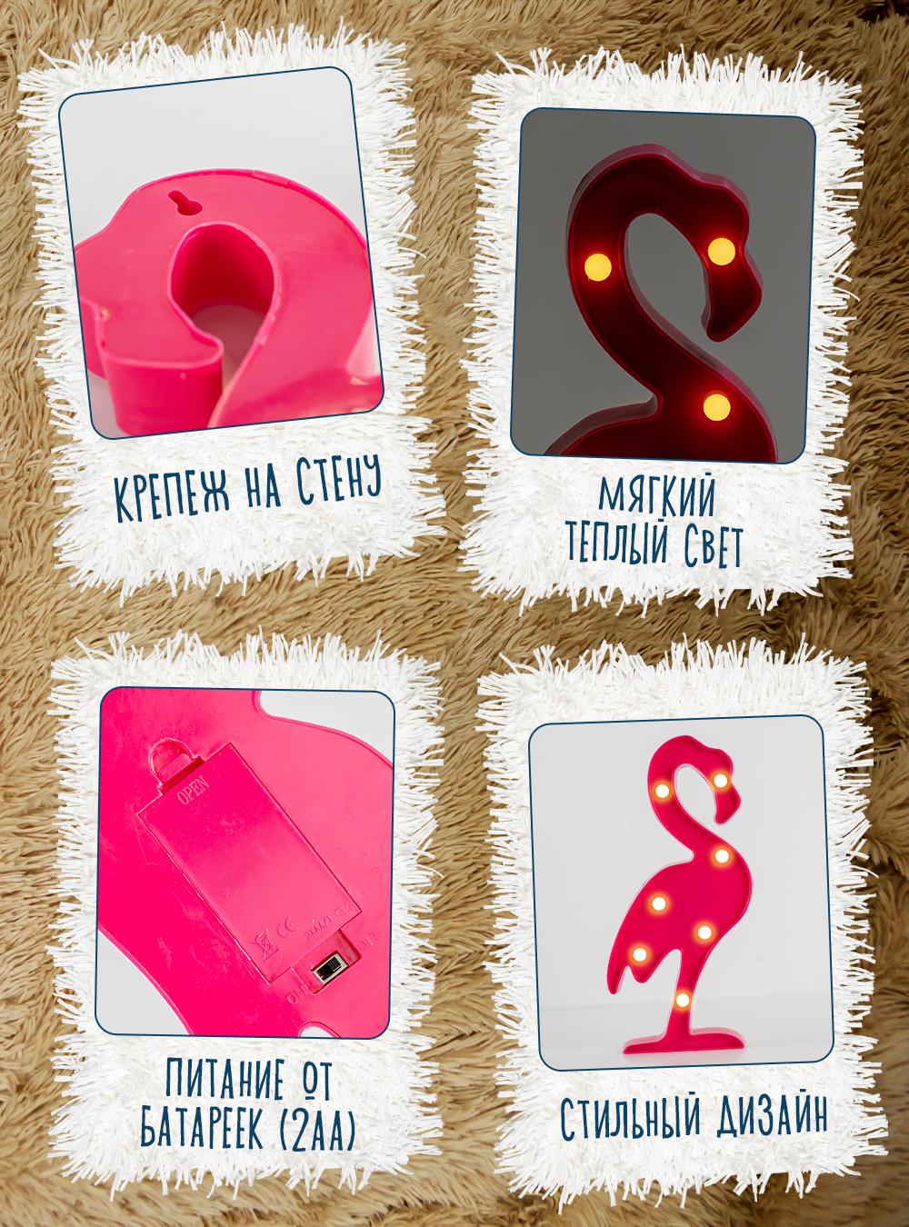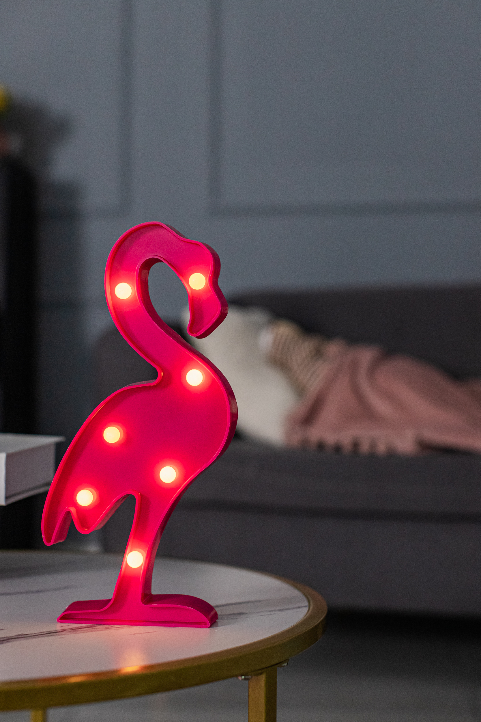 Ночник Фламинго, настольный светильник - подарок на день рождения, 2AA, 30 см